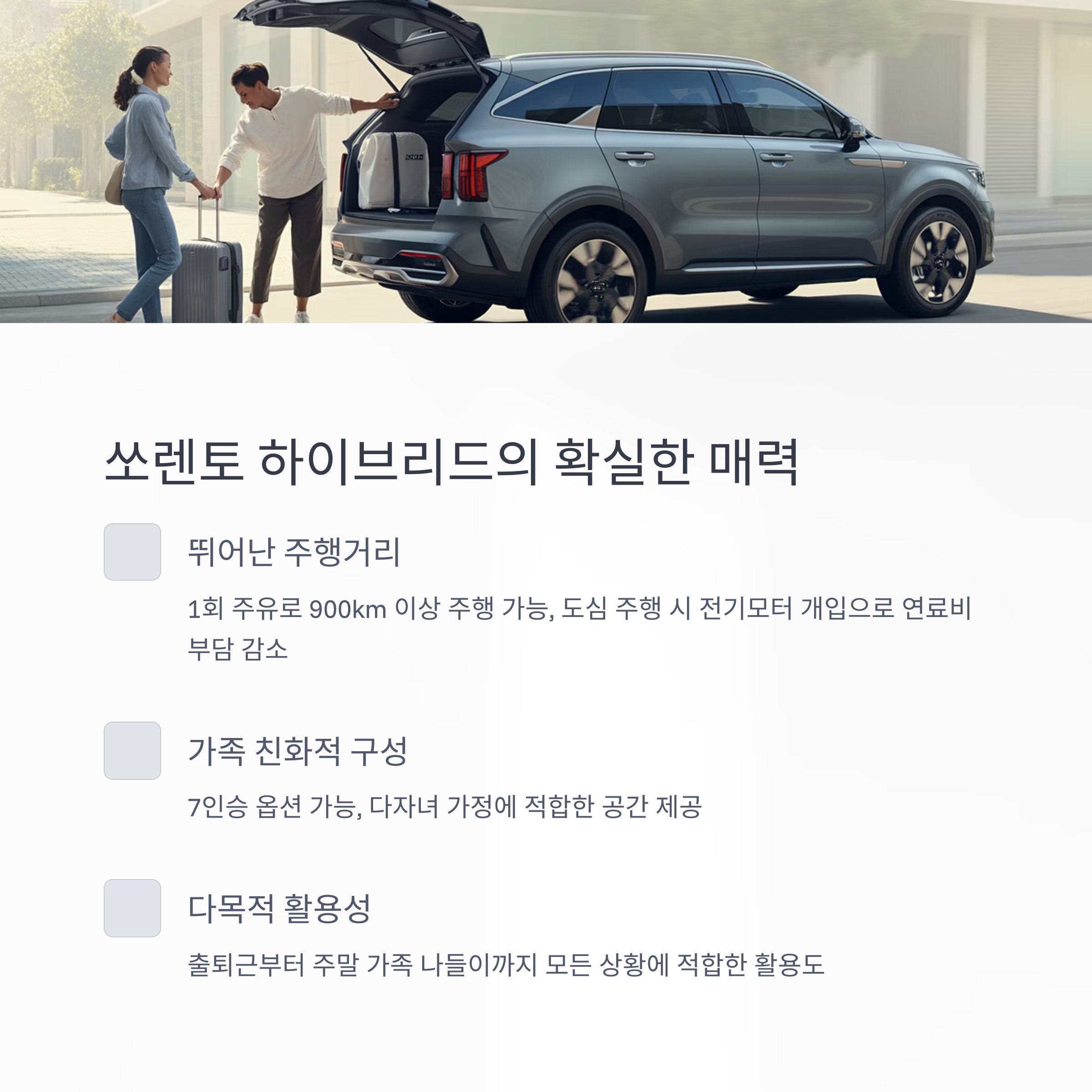 쏘렌토 하이브리드는 1회 주유로 900km 이상 달릴 수 있고