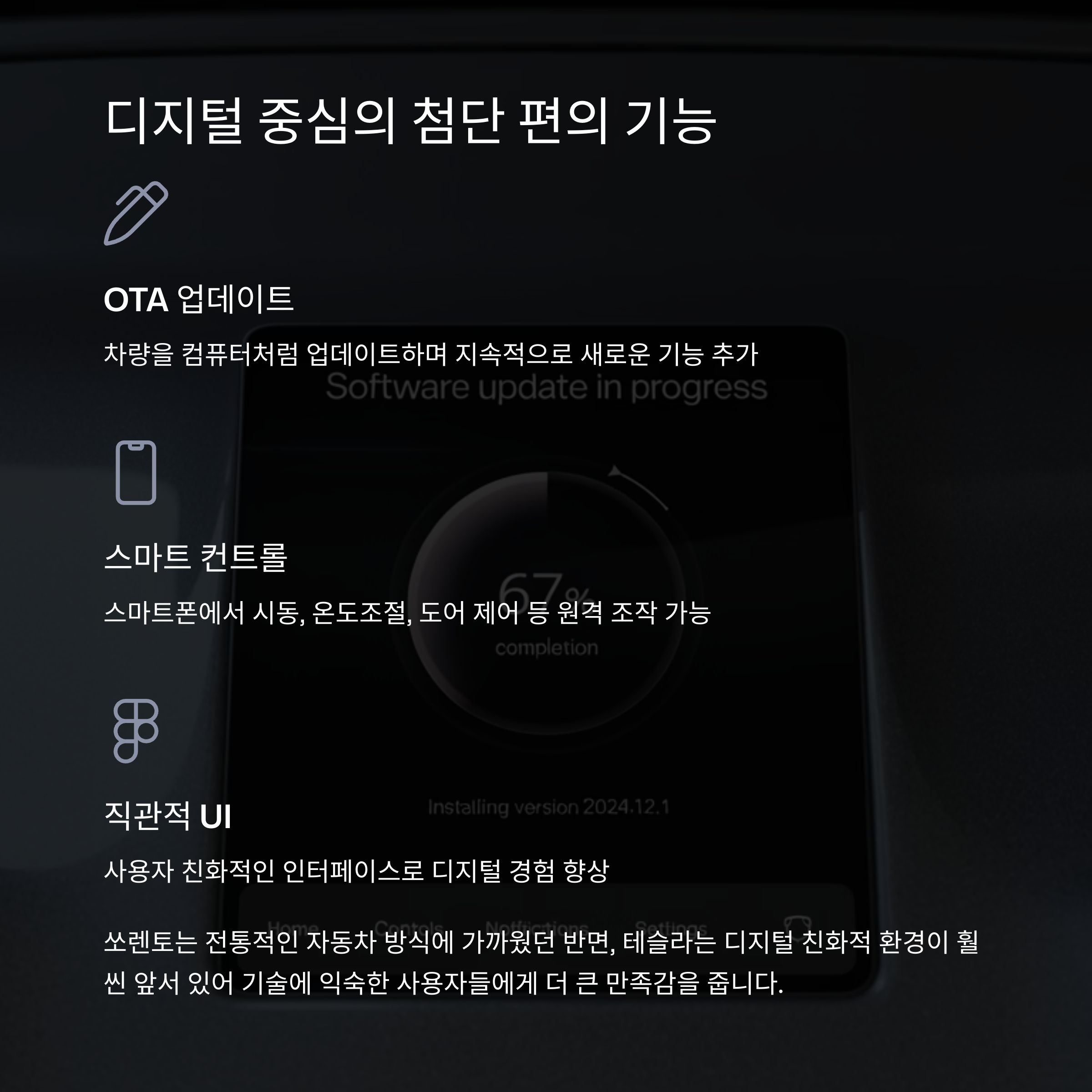반면 테슬라는 브랜드 가치와 OTA 업데이트로