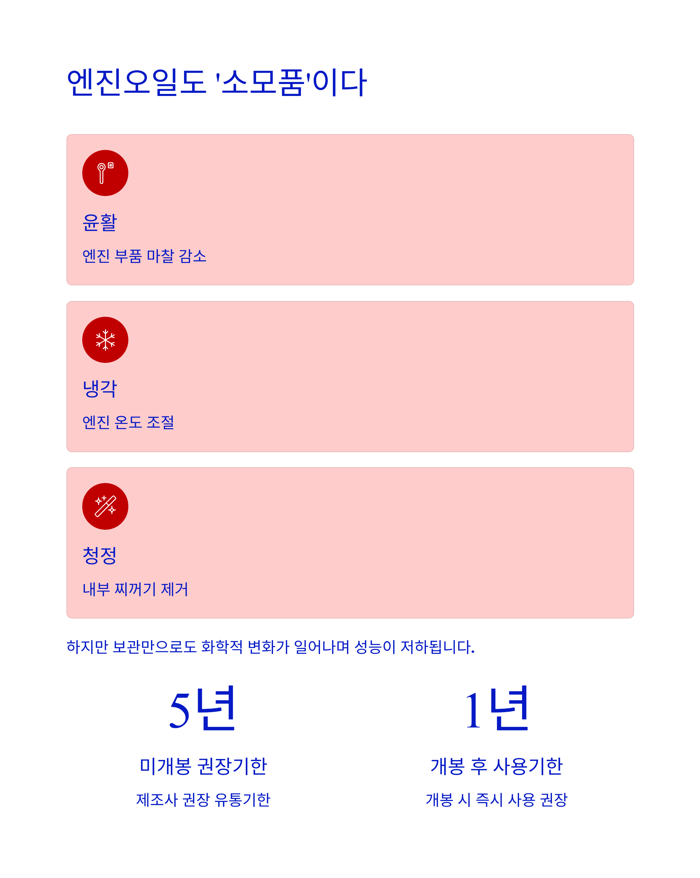 엔진오일도 유통기한이 있으며, 지나친 오일을 사용할 경우 차량에 큰 무리를 줄 수 있습니다.