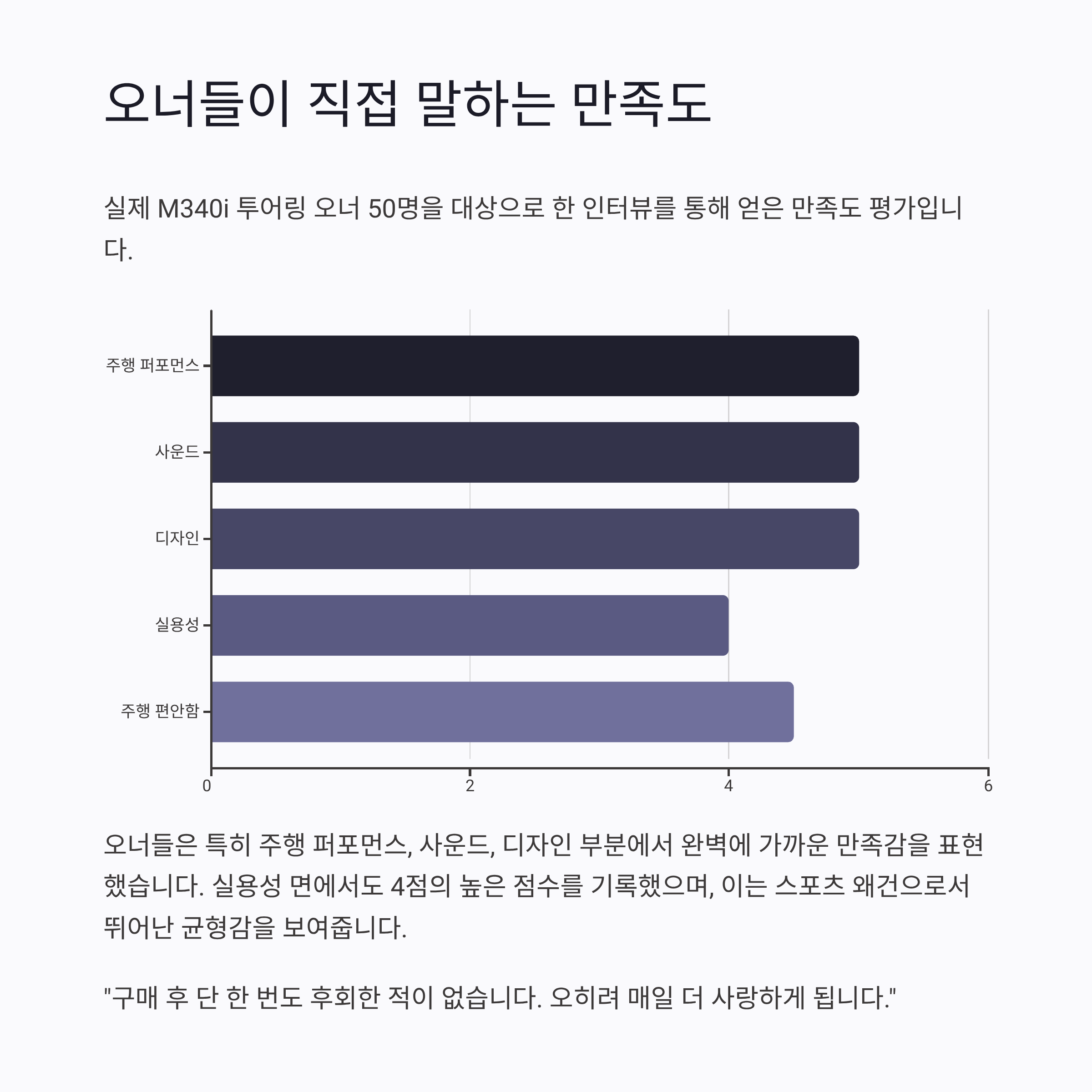 아래는 실제 오너들의 인터뷰를 기반으로 한 만족도 요약입니다.
