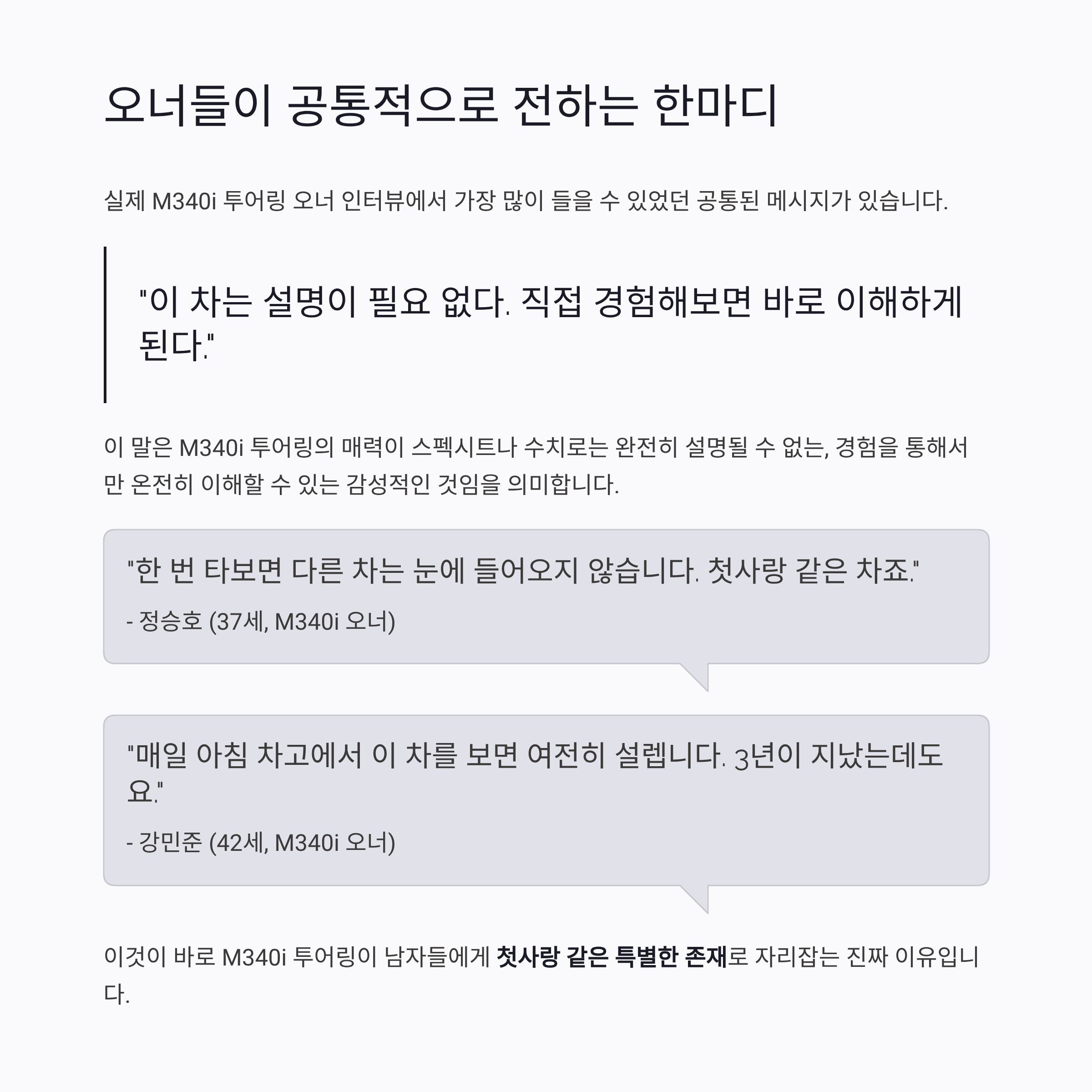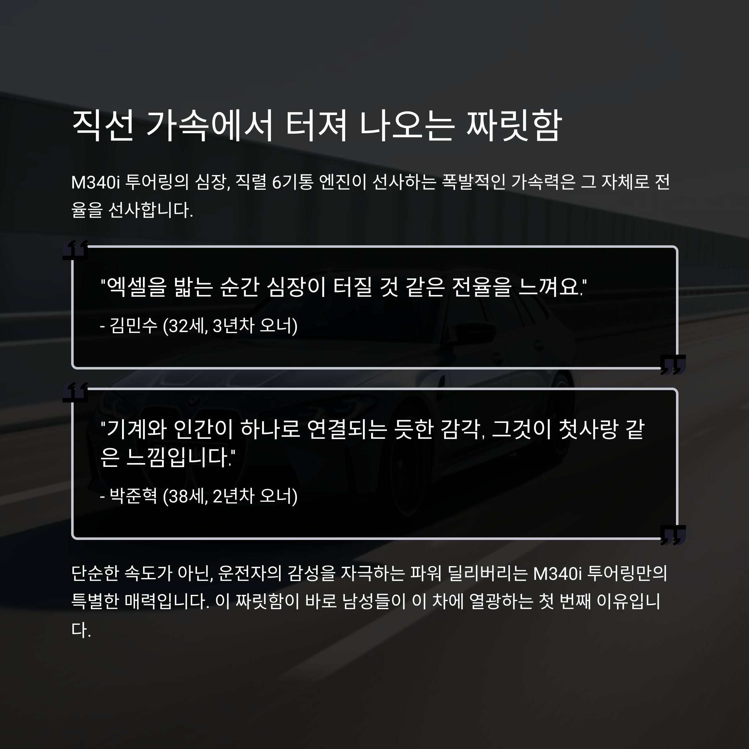 실제 오너들의 이 말은 M340i 투어링이 왜 남자들에게 첫사랑 같은 차인지