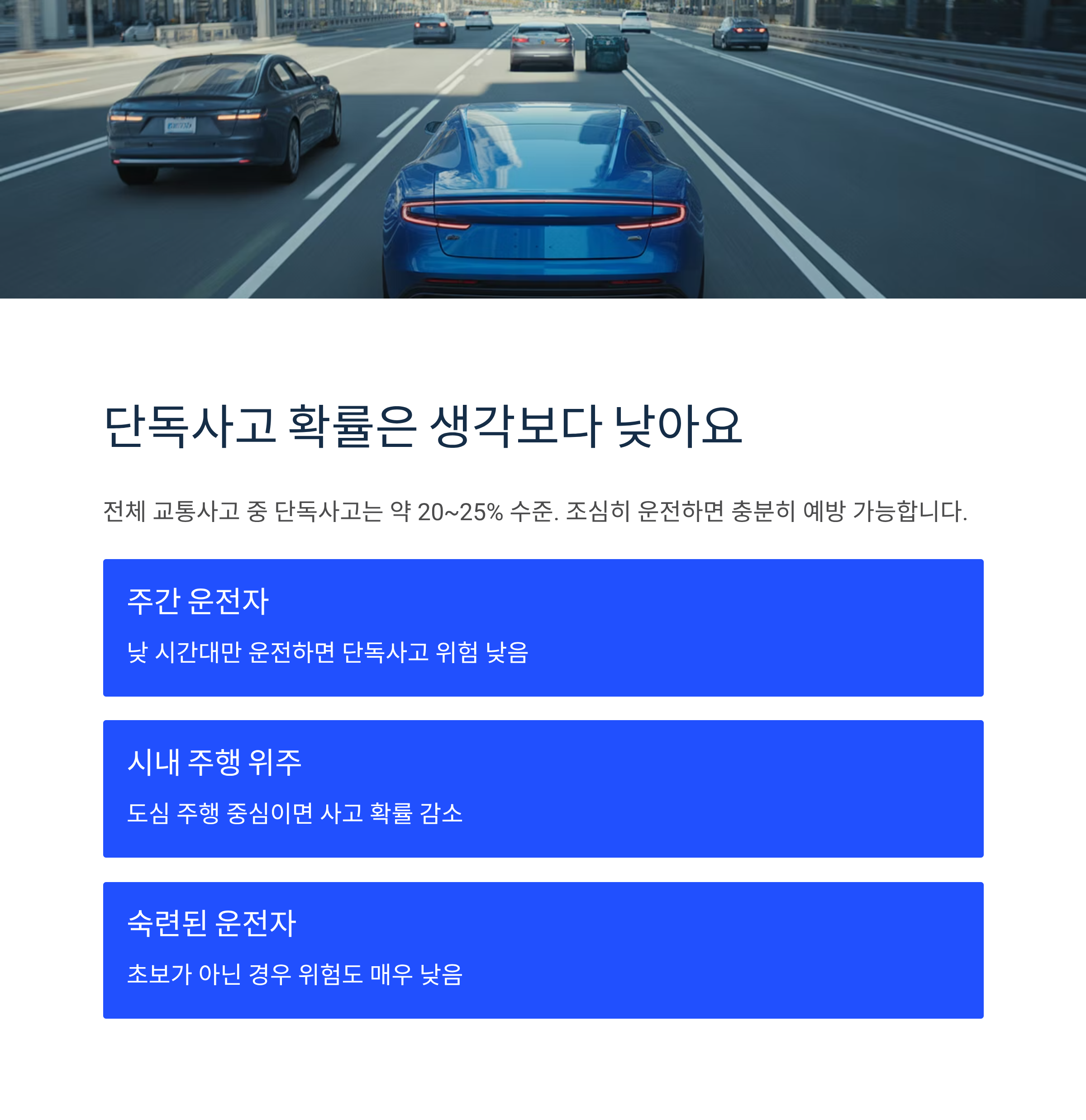 특히 다음과 같은 경우, 단독사고 위험 자체가 낮다고 볼 수 있어요.
