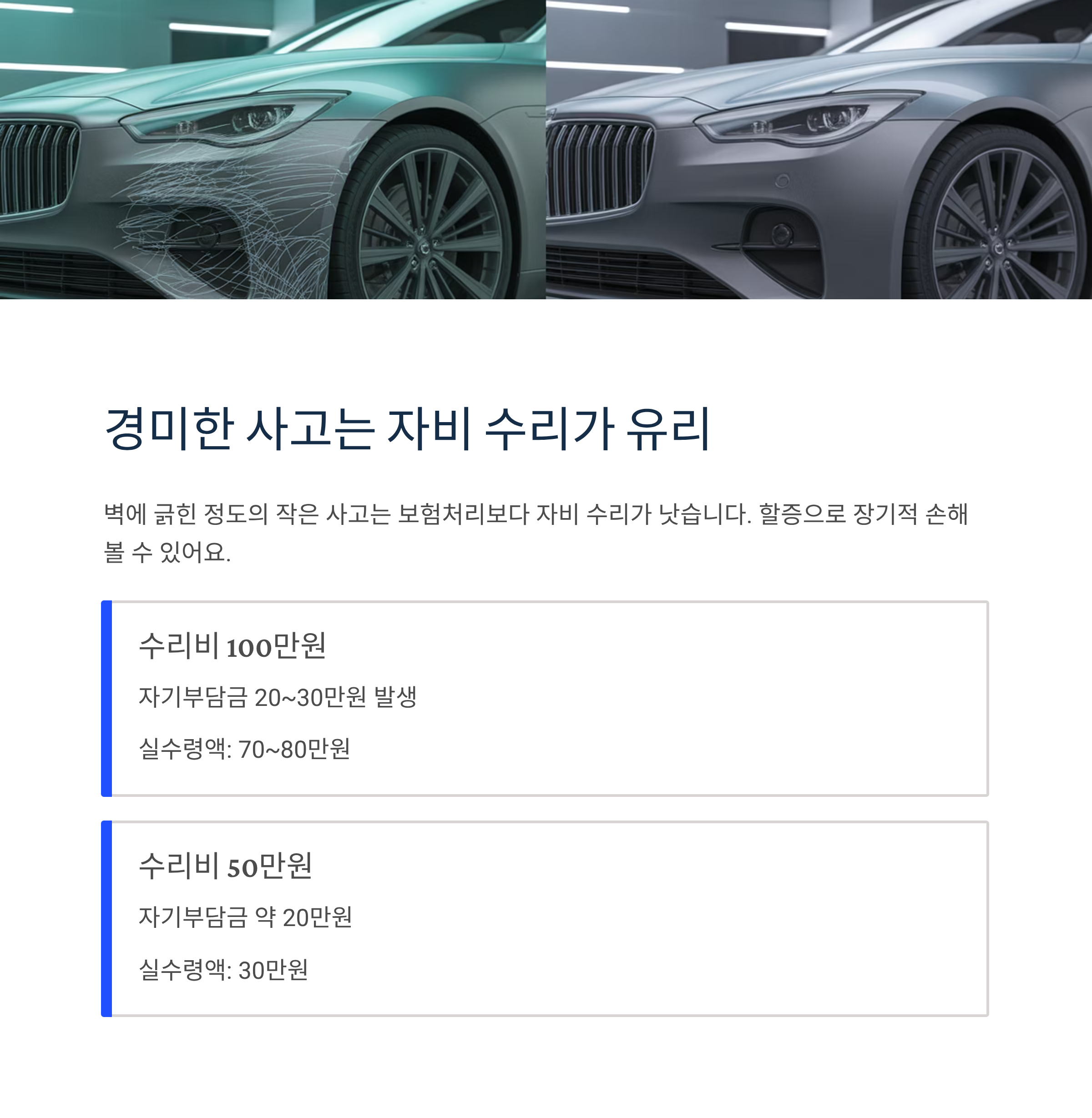 작은 사고를 몇만 원 아끼려다 오히려 장기적으로 더 큰 금액을 지출할 수 있습니다.