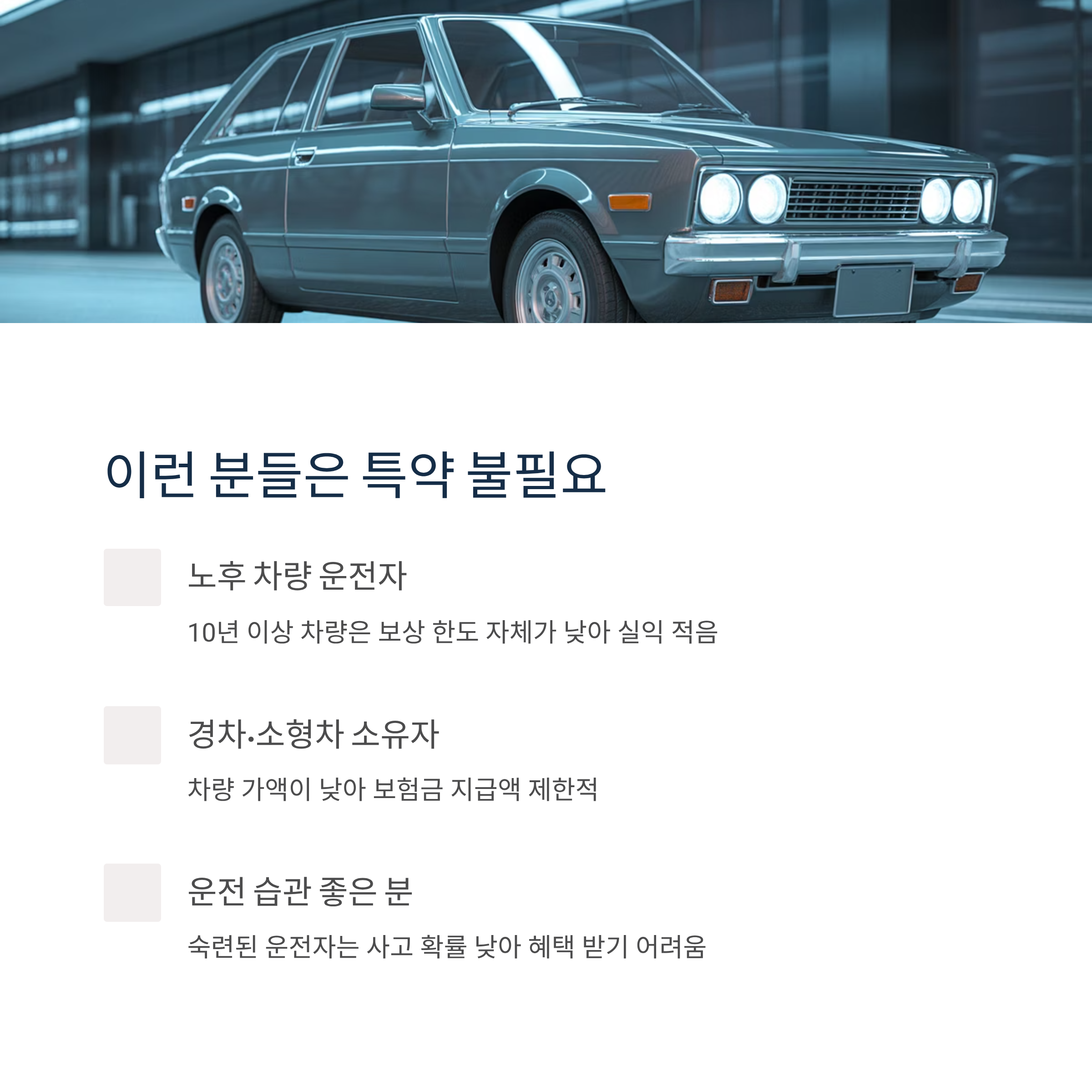 하지만 모든 운전자에게 이 특약이 꼭 필요한 건 아닙니다.