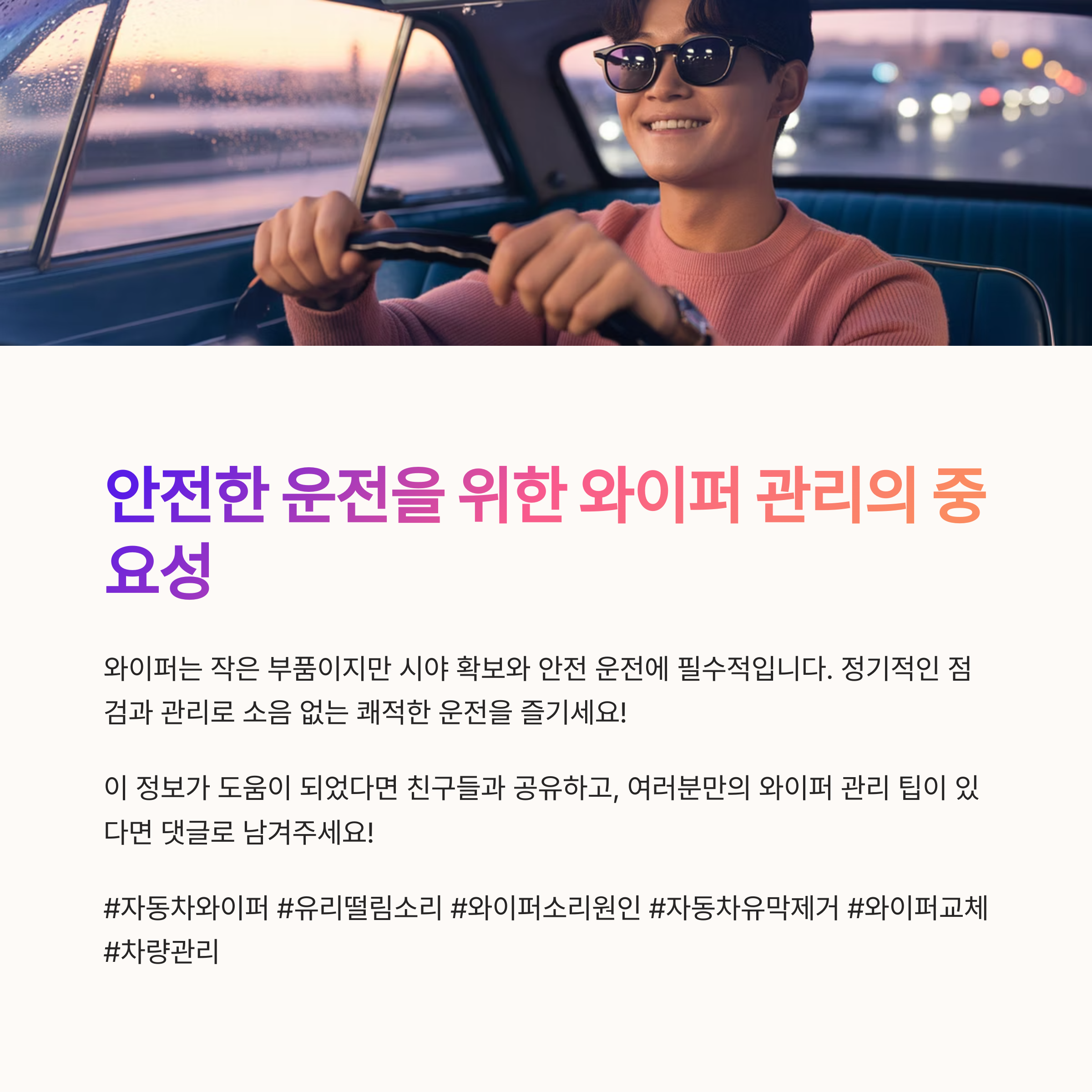 이런 소리는 단순히 신경 쓰이는 문제를 넘어 유리나 와이퍼 상태의 이상 신호일 수 있기