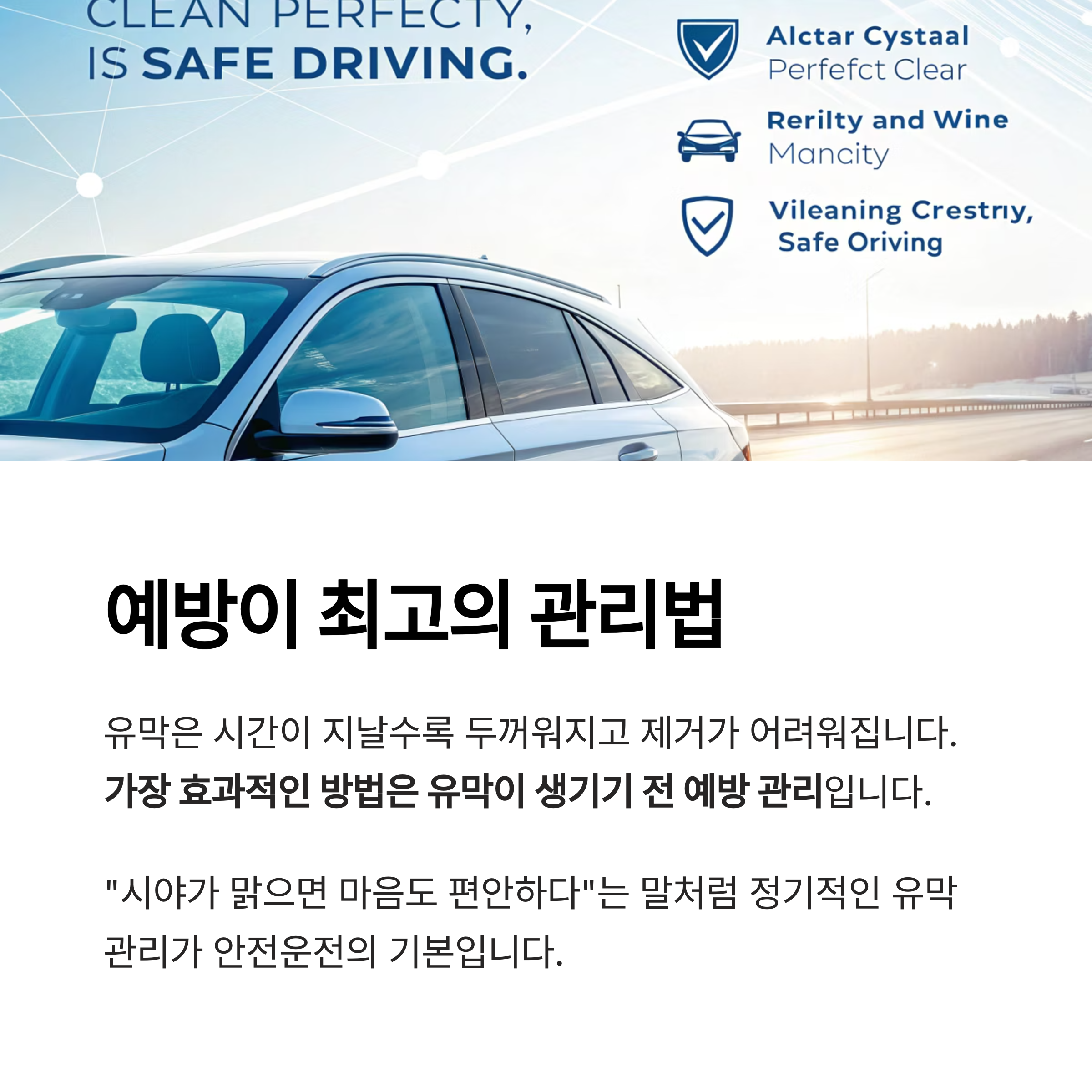 운전자의 안전과 직결되는 만큼 정기적인 유막 점검과 제거가 중요합니다.
