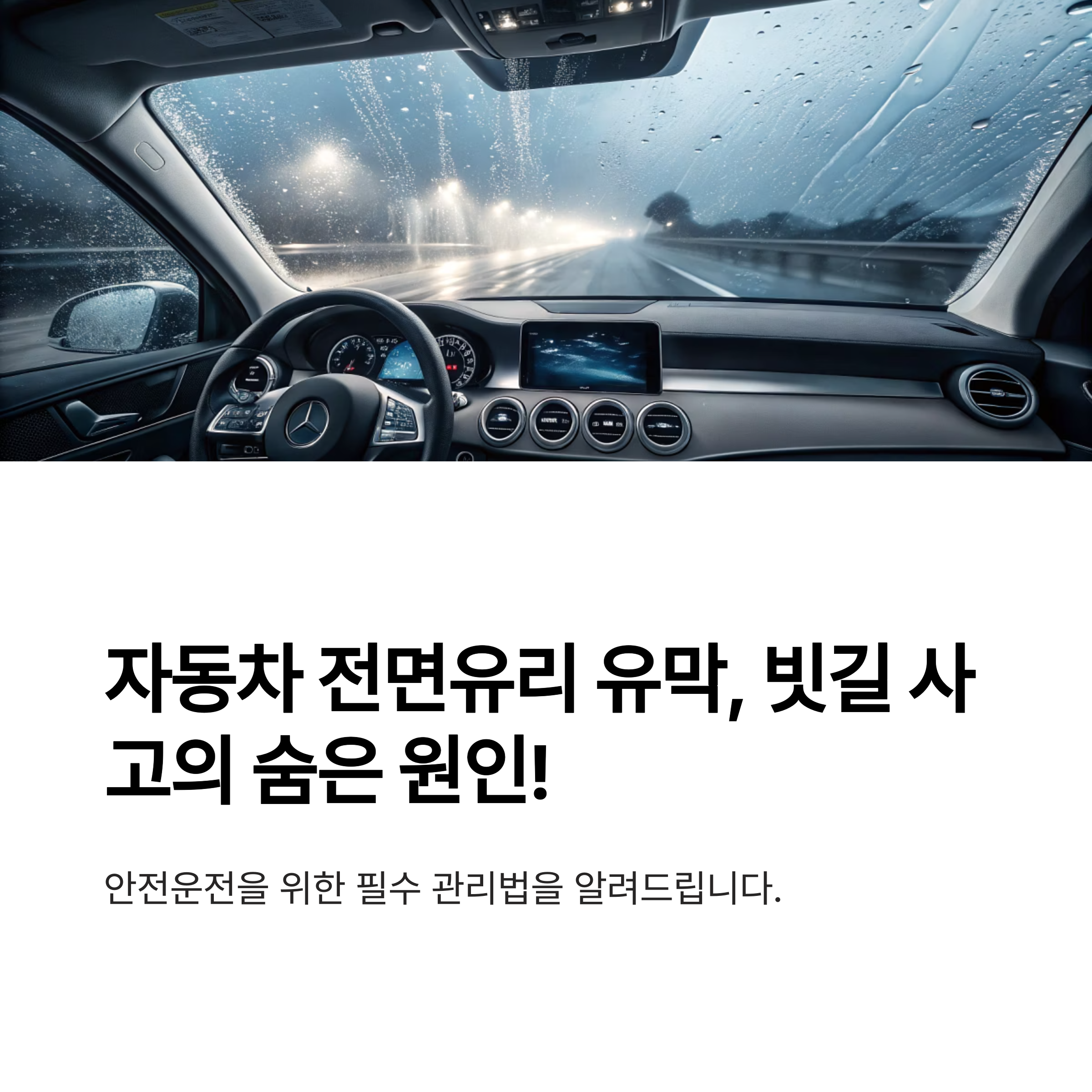 자동차 전면유리의 유막은 시야를 방해하고, 특히 비 오는 날 교통사고 위험을 높이는 원인이 됩니다.