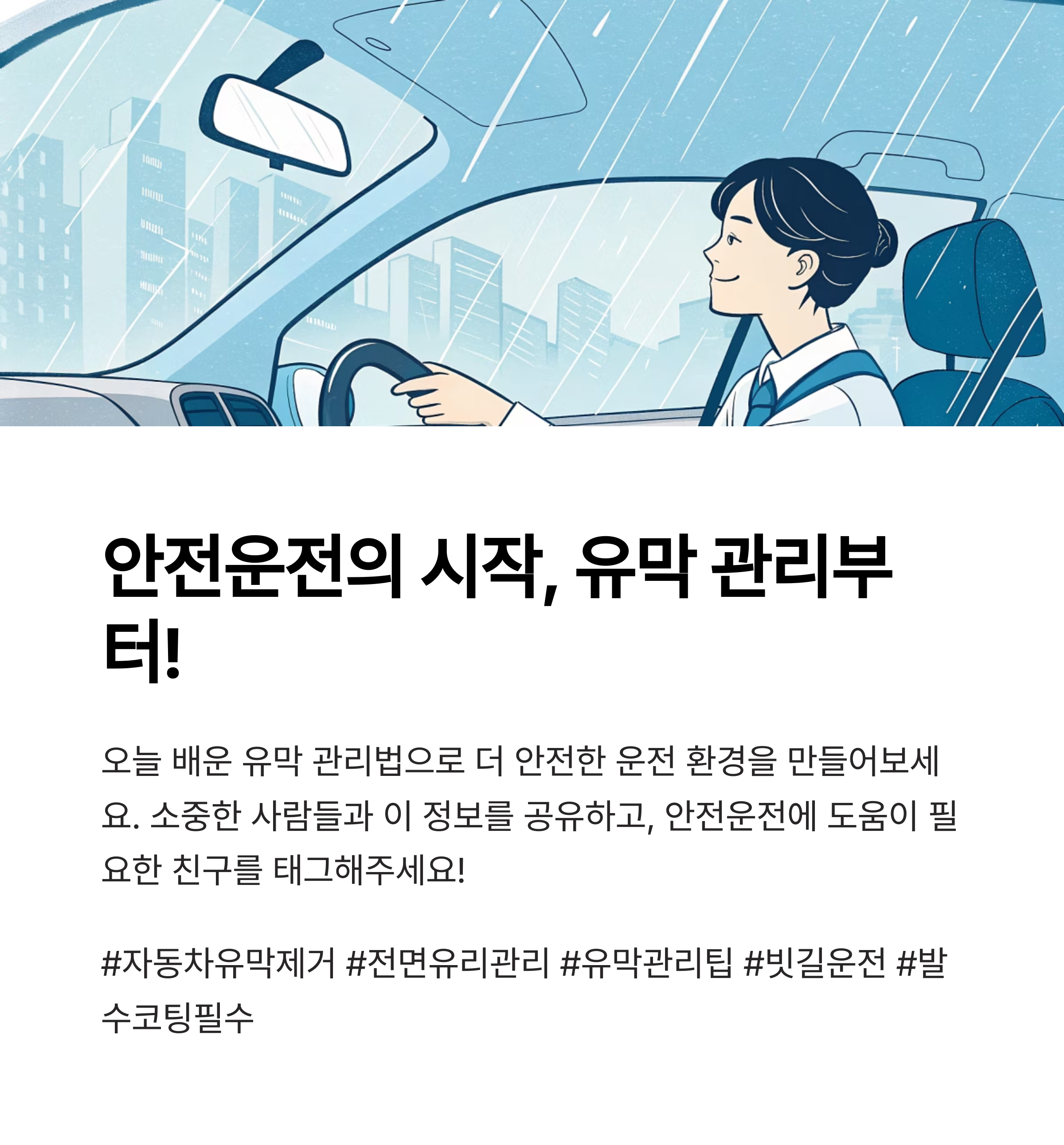 운전자의 안전과 직결되는 만큼 정기적인 유막 점검과 제거가 중요합니다.