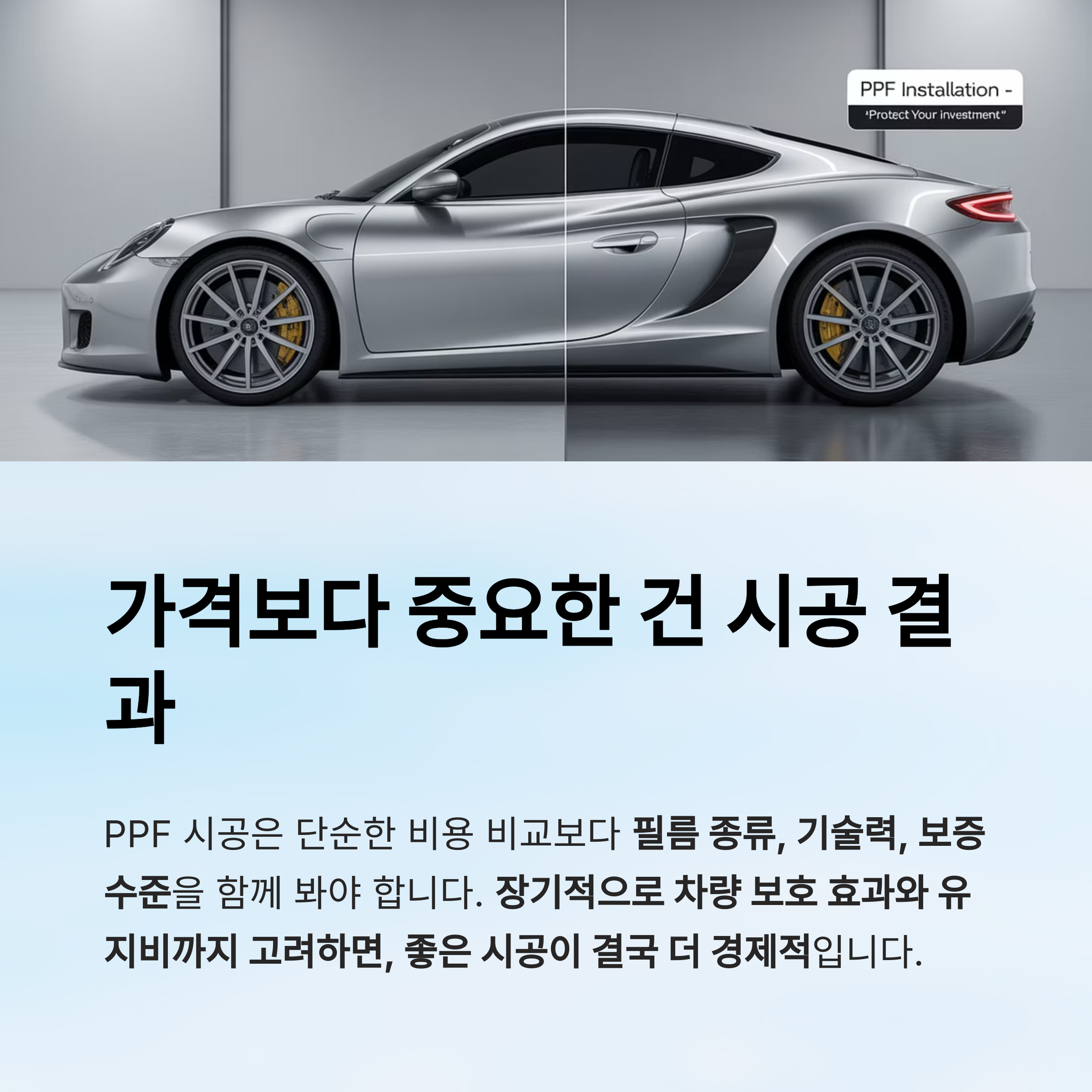 PPF 시공은 단순한 비용 비교보다 필름 종류, 기술력, 보증 수준을 함께 봐야 합니다
