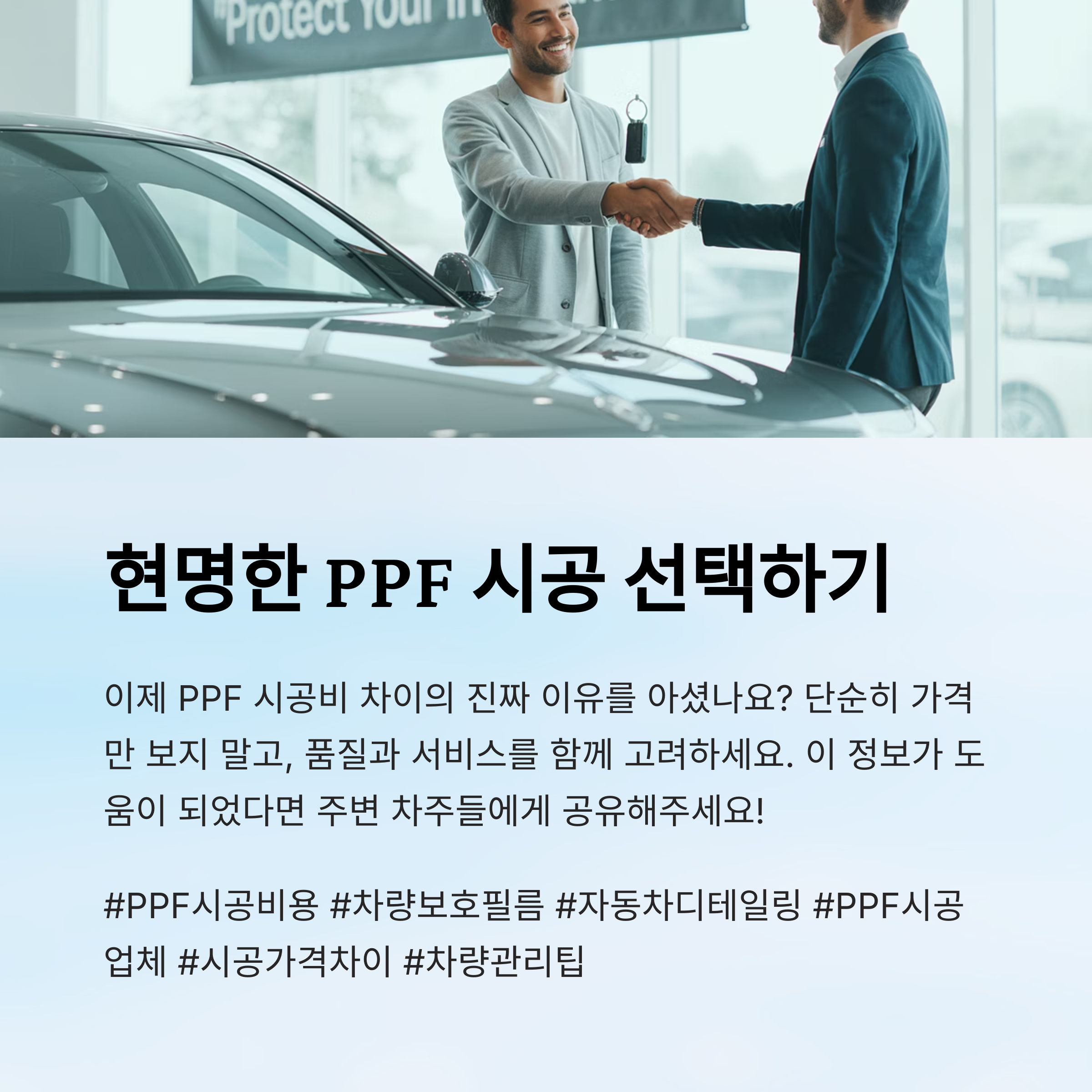 PPF 시공은 단순한 비용 비교보다 필름 종류, 기술력, 보증 수준을 함께 봐야 합니다