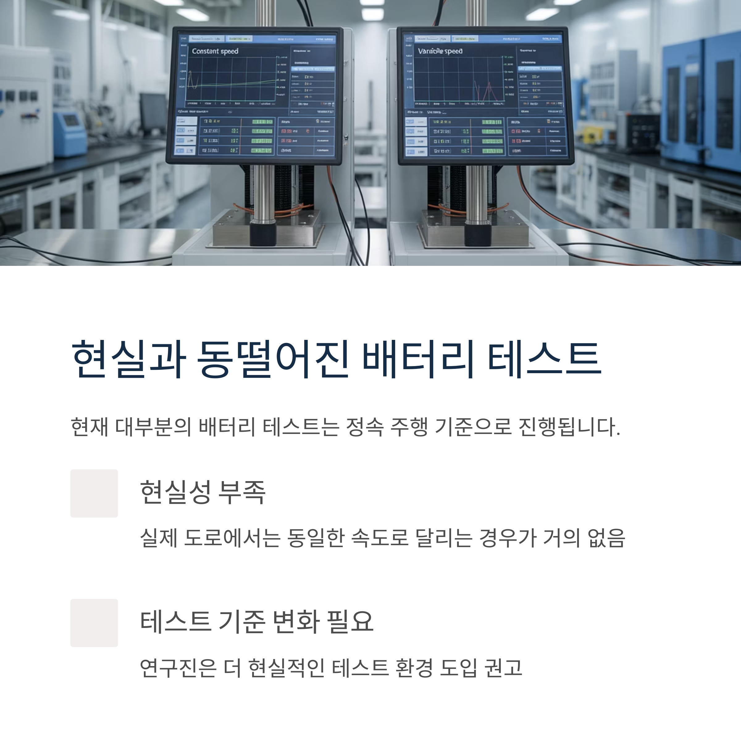현재 대부분의 전기차 배터리 테스트는 정속 주행을 기준으로 진행됩니다.