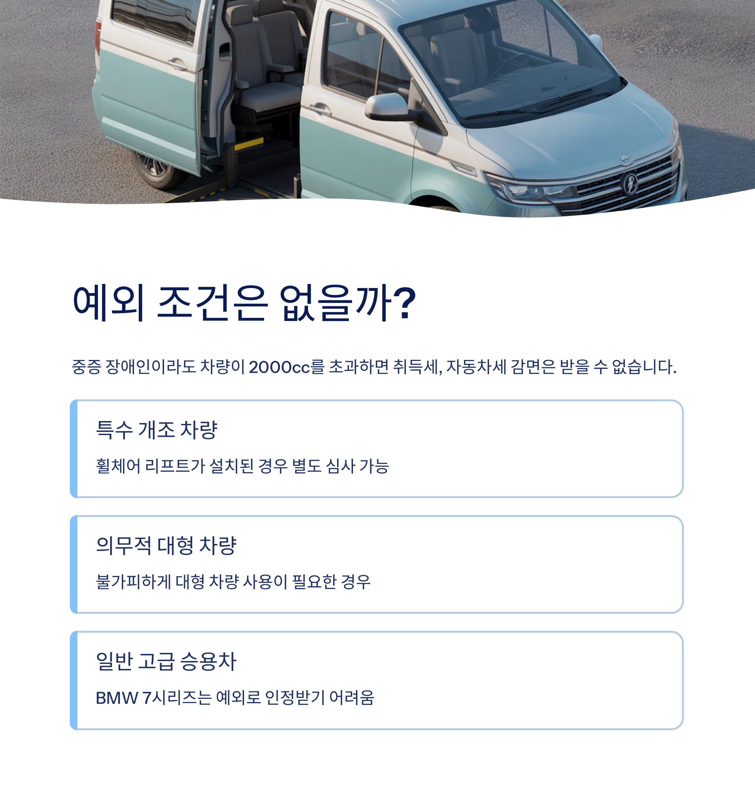 중증 장애인이라 하더라도 예외는 적용되지 않으며, 혜택을 받으려면 차량 선택에 신중함이 필요합니다.