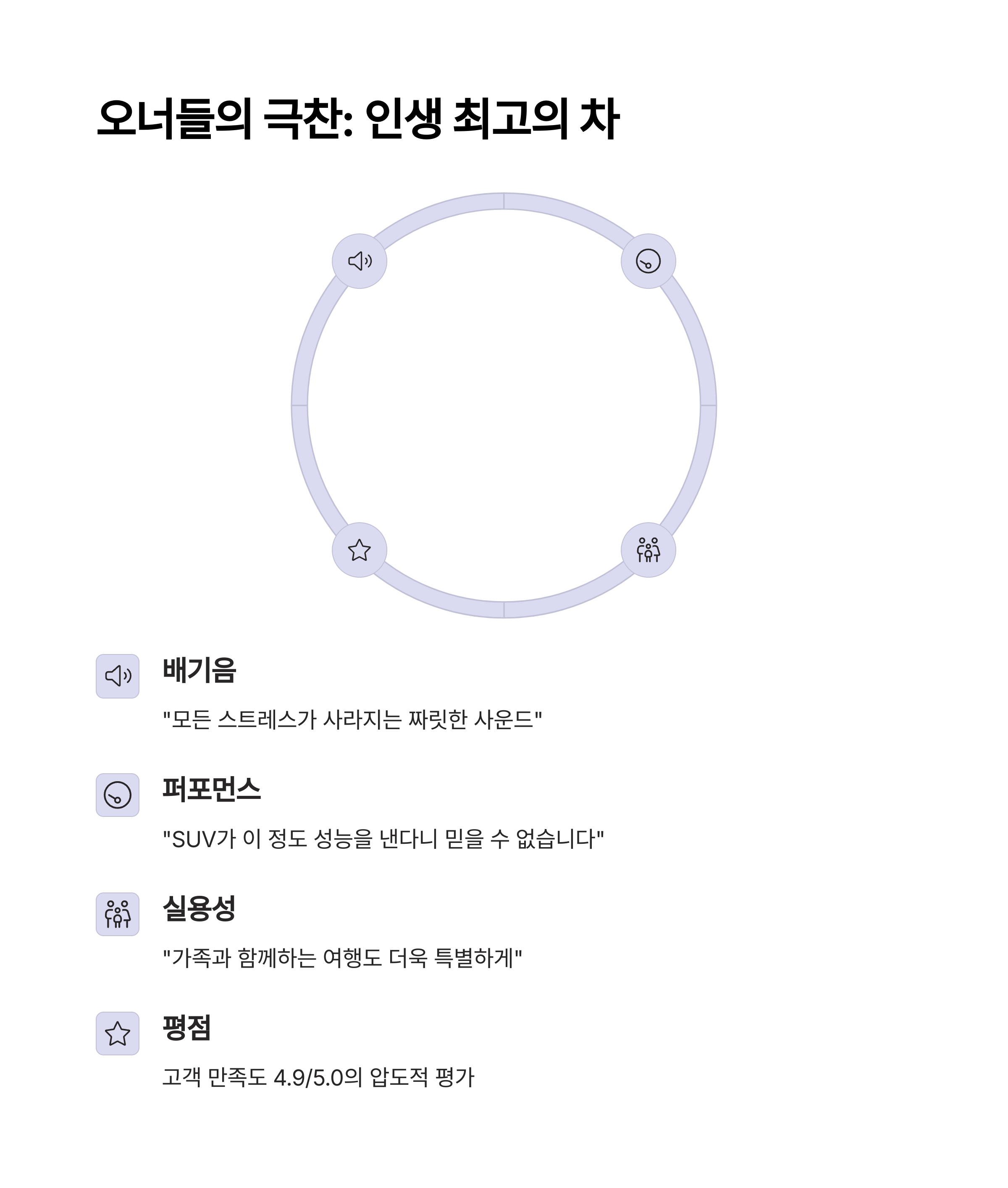 “X3 M을 산 지 6개월 됐는데, 매일 출근길이 레이싱 트랙 같아요. 특히 그 배기음, 진짜 심장이 쿵쿵 뛰게 만드네요. 주말엔 가족과 함께 캠핑 가는데, 트렁크 공간도 넉넉하고 승차감도 최고예요. 전기차도 타봤지만, X3 M처럼 운전자를 설레게 하는 차는 없어요. BMW맛집 김민구 과장님이 꼼꼼히 설명해줘서 구매 결정도 빨리 했죠!”
