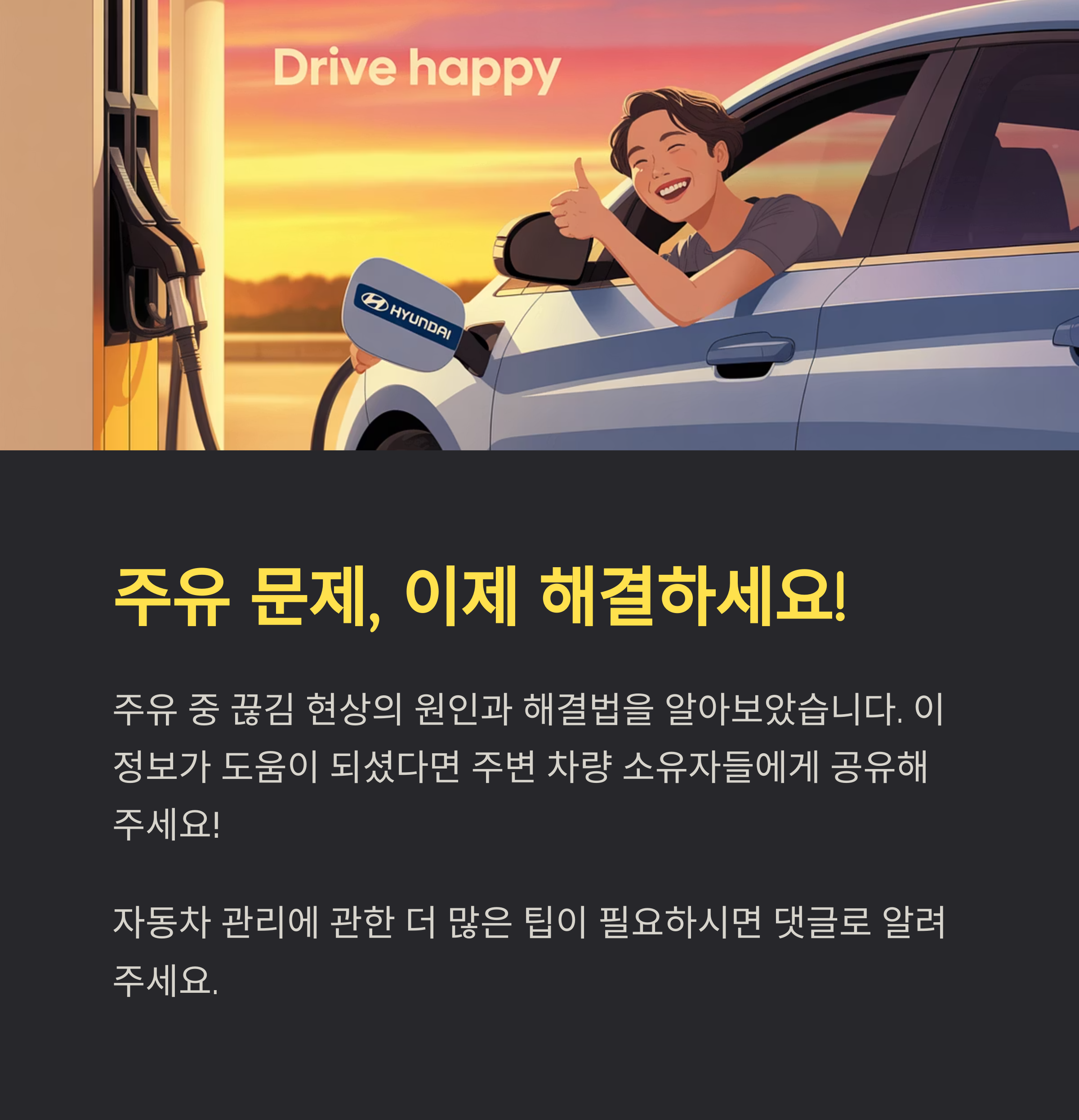 자동차 주유를 하다 보면 중간에 주유가 자꾸 '턱' 하고 멈추는 경험이 있습니다.