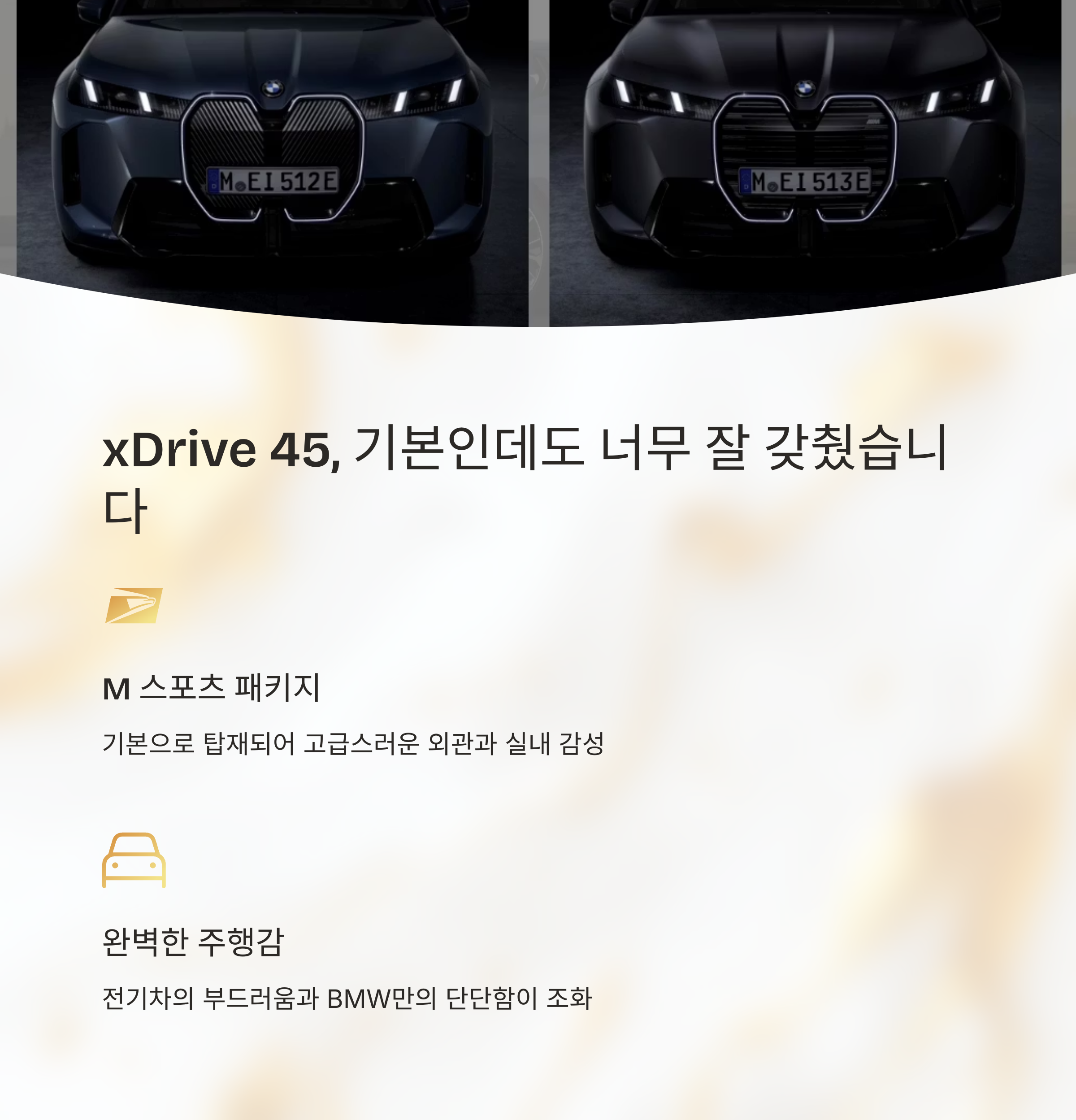 | xDrive 60 | 약 550km | 여유로운 퍼포먼스 | 프리미엄 옵션 다양 |