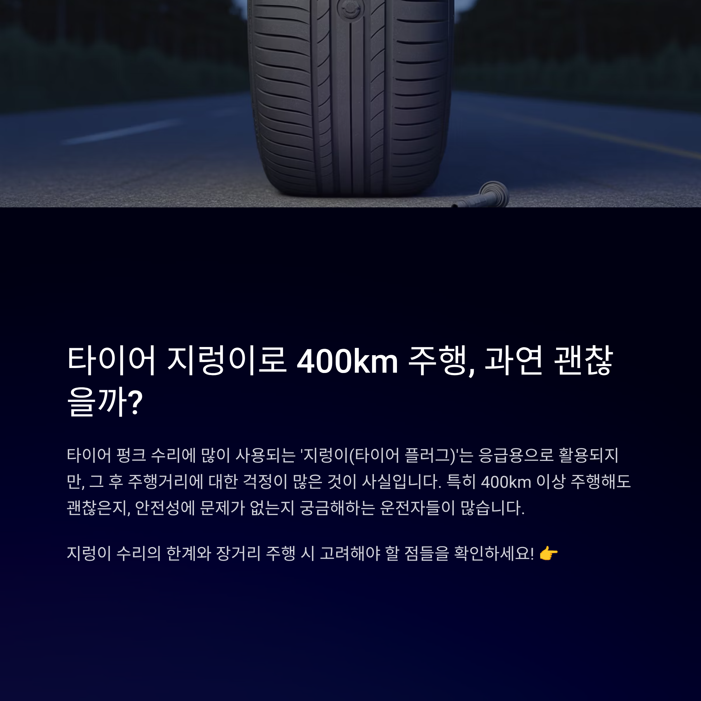 타이어 지렁이 수리 후 400km 이상 달려도 안전할까?