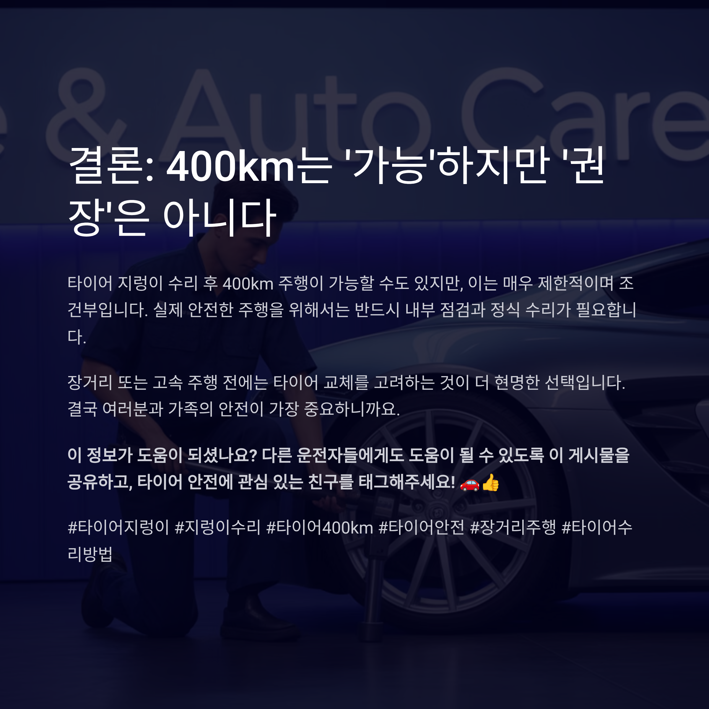 타이어 지렁이 수리 후 400km 이상 달려도 안전할까?