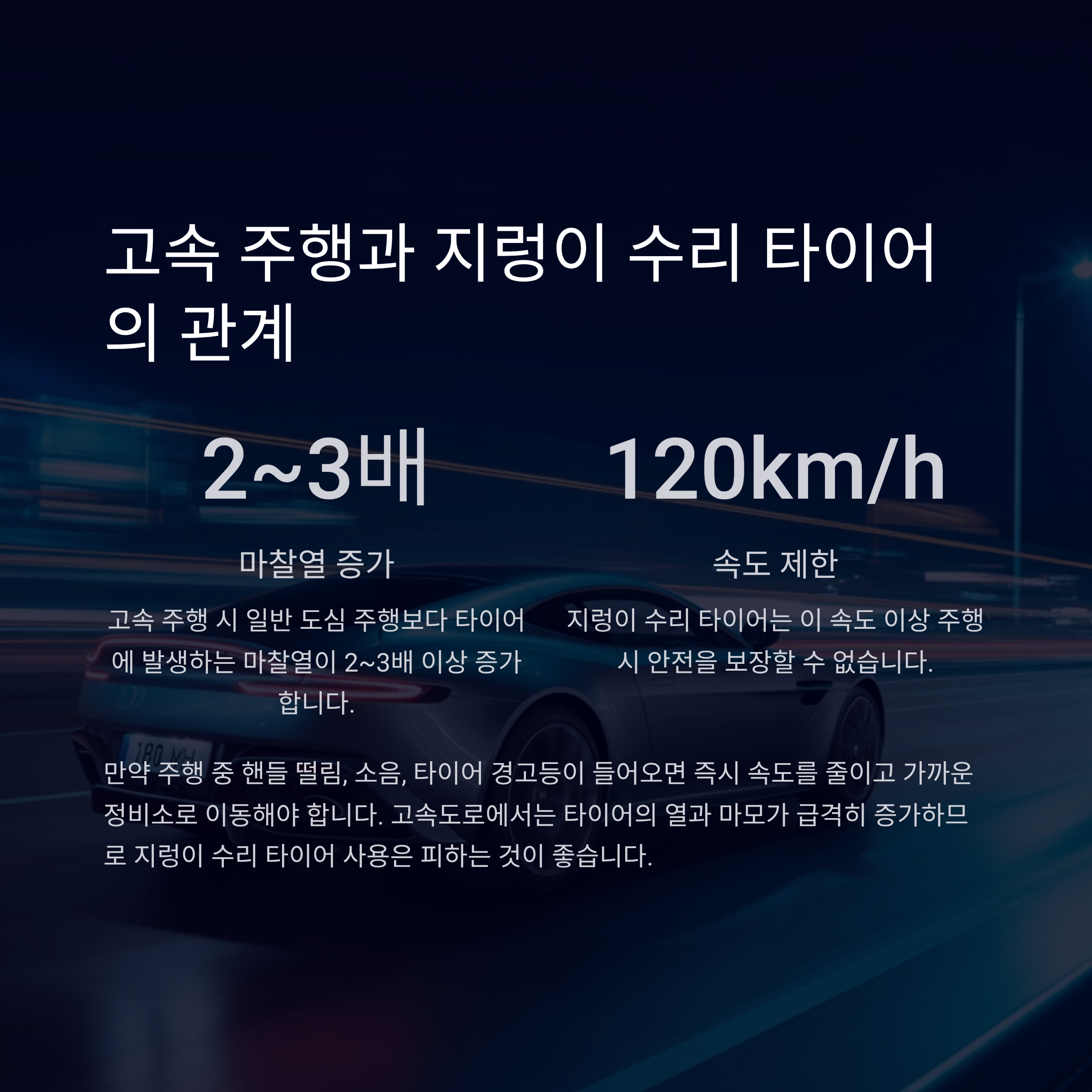 120km/h 이상의 주행은 절대 피해야 합니다.