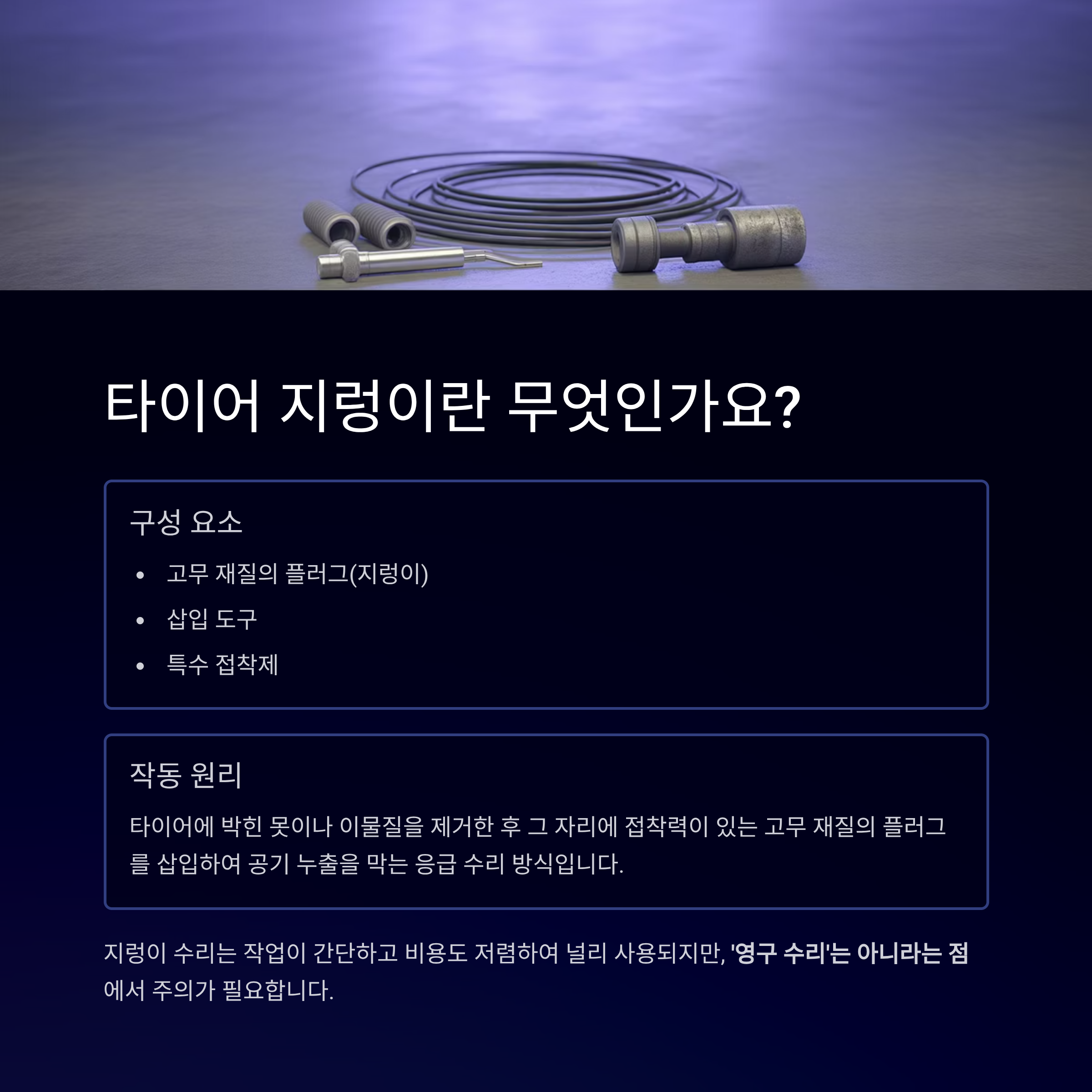 지렁이는 타이어 외부에서 삽입하는 일종의 응급 플러그입니다.