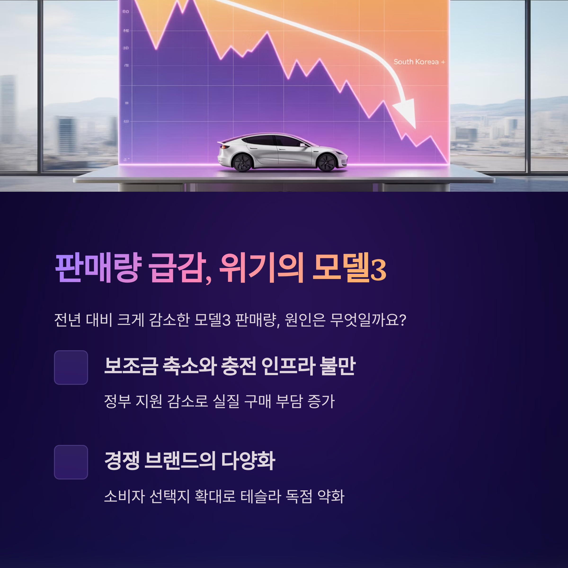 한때는 인기몰이를 했던 모델3가 왜 이렇게 부진해졌을까요?