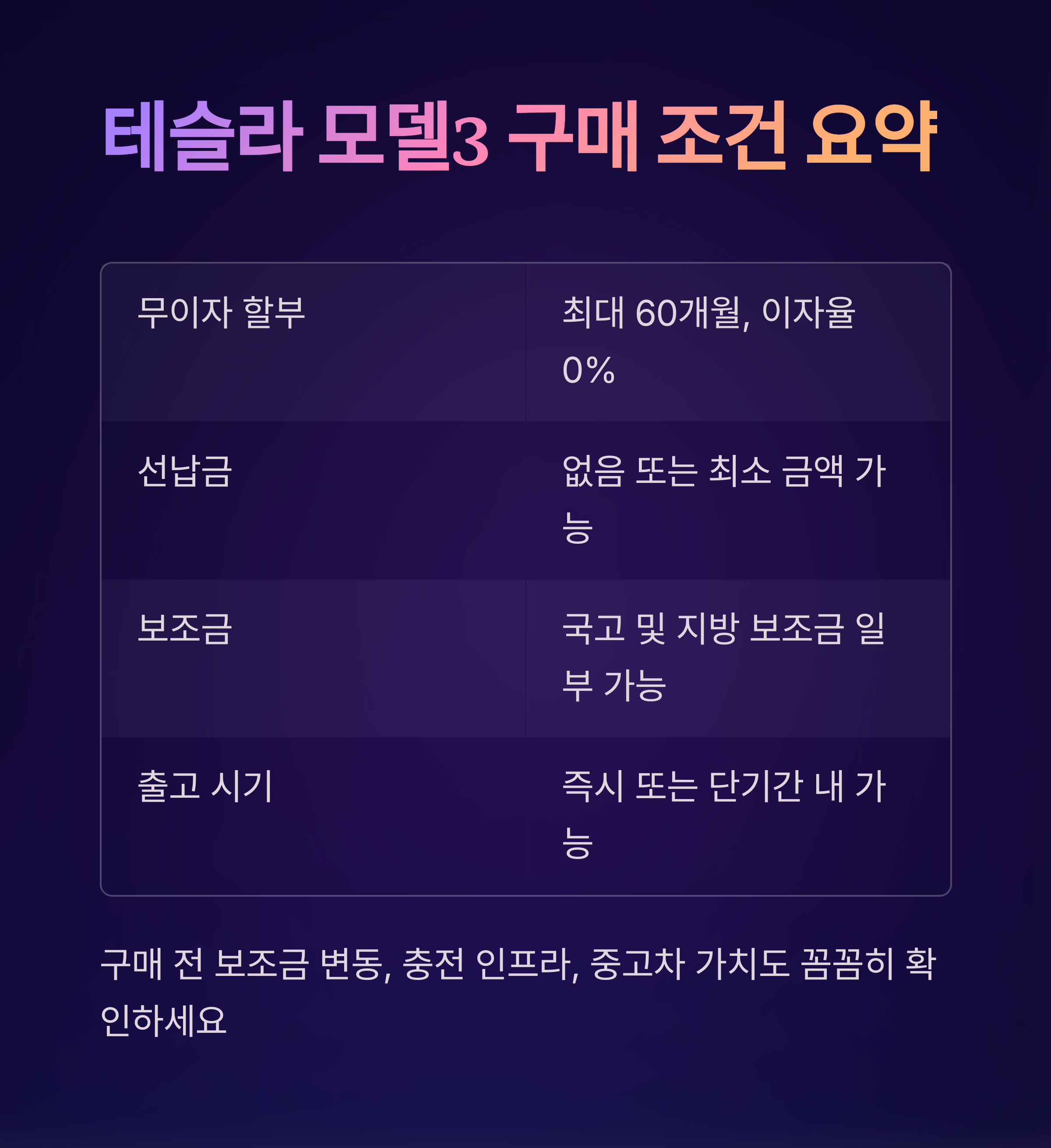 현재 테슬라 모델3 구매 조건 요약
