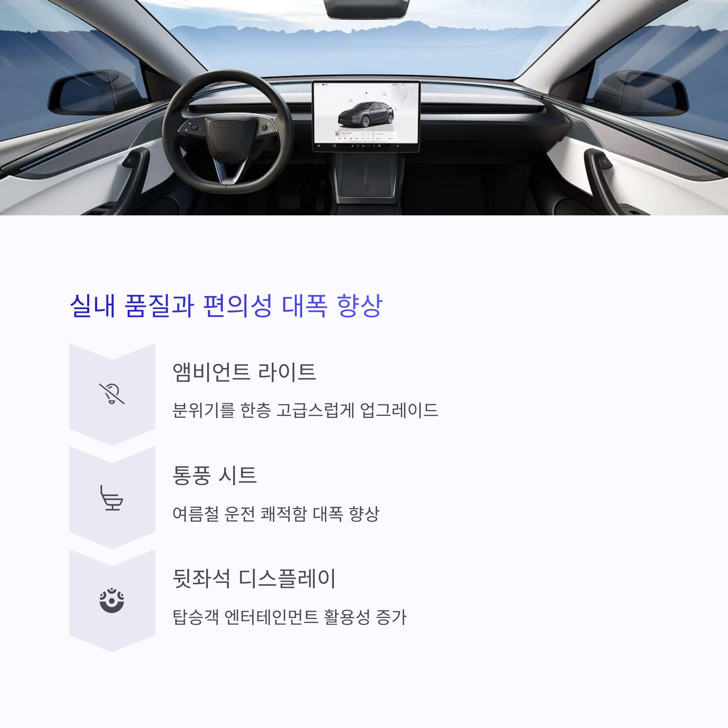 앰비언트 라이트, 송풍구 재배치, 소프트 패드 적용, 통풍 시트 추가 등