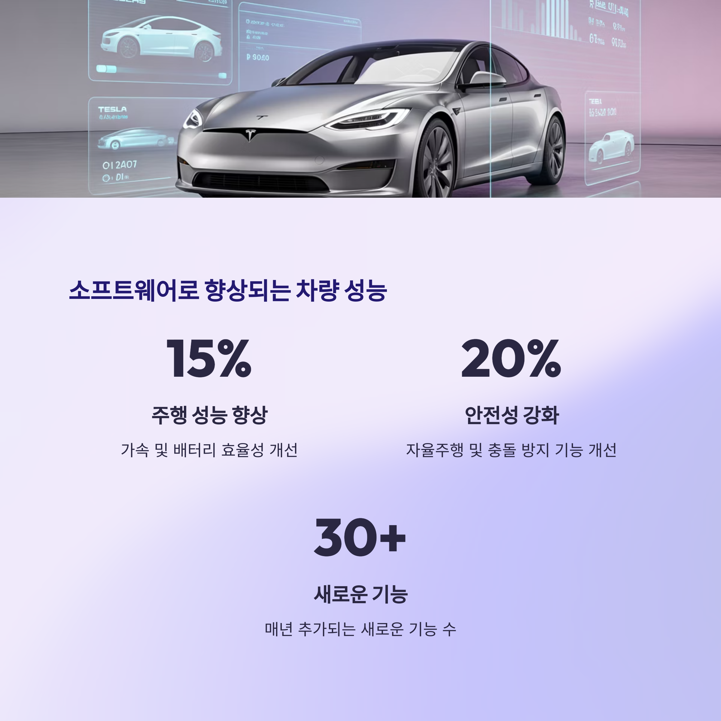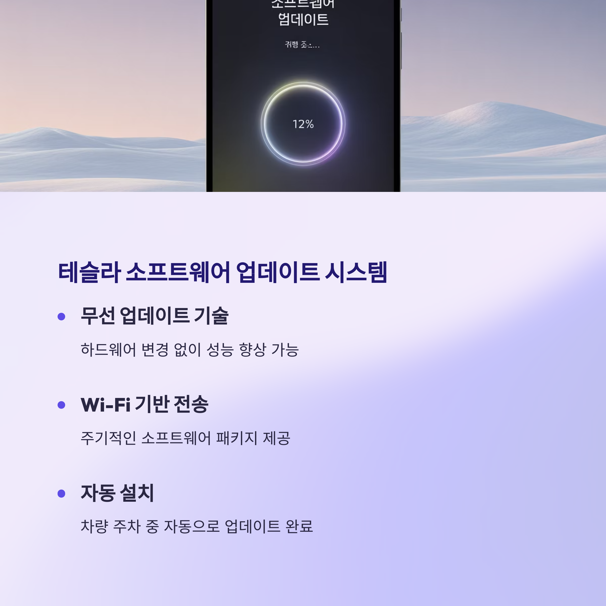 테슬라는 소프트웨어 기반 차량을 제작하여, 하드웨어가 아닌 소프트웨어를 통해 많은 기능을 업그레이드할 수 있도록 설계했습니다. 이 시스템은 차량을 인터넷에 연결된 상태로 두면 자동으로 최신 버전의 소프트웨어를 다운로드하고 설치할 수 있게 해줍니다. 이를 통해 테슬라는 자동차의 성능을 지속적으로 개선하고, 새로운 기능을 추가할 수 있습니다.