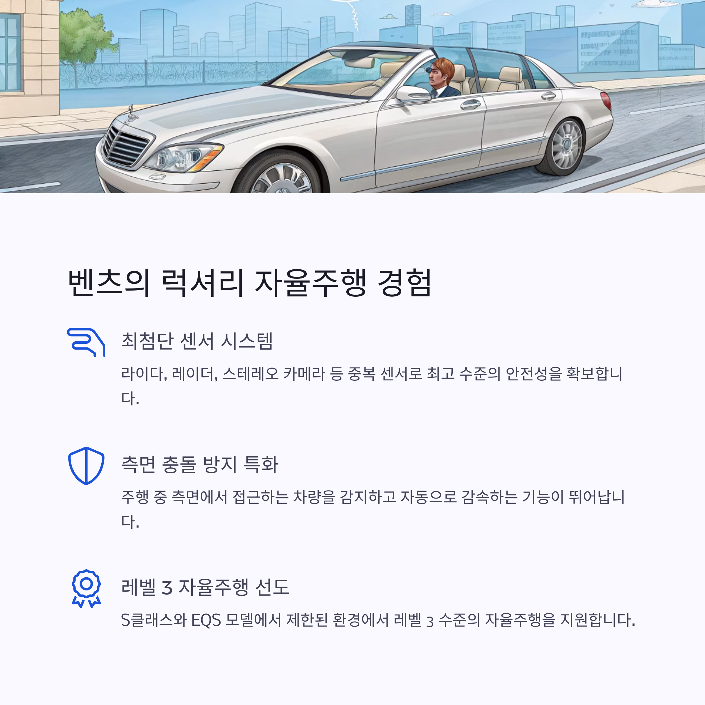 | 벤츠 | MBUX 통합 시스템 지도 기반 강화 주행 |