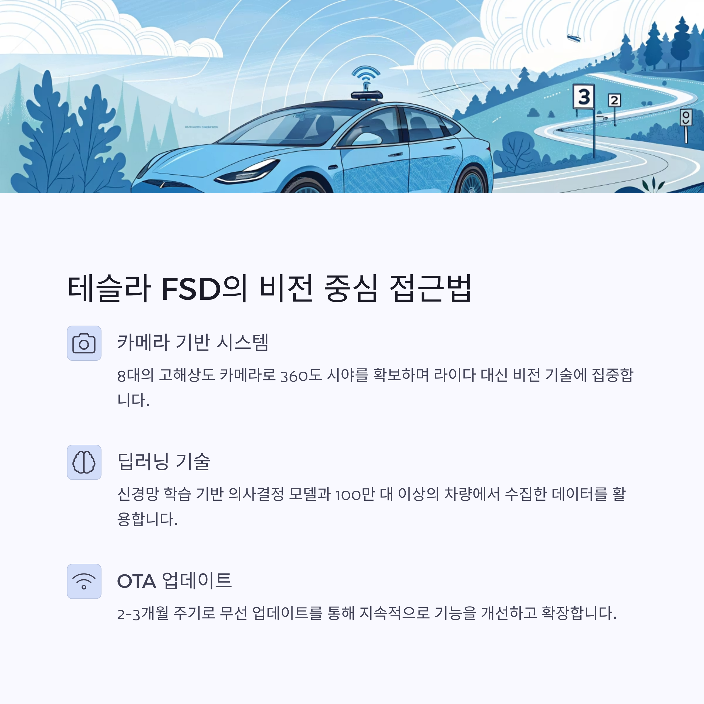 | 테슬라 FSD | 신경망 기반 종단간 학습 AI 중심 의사결정 |