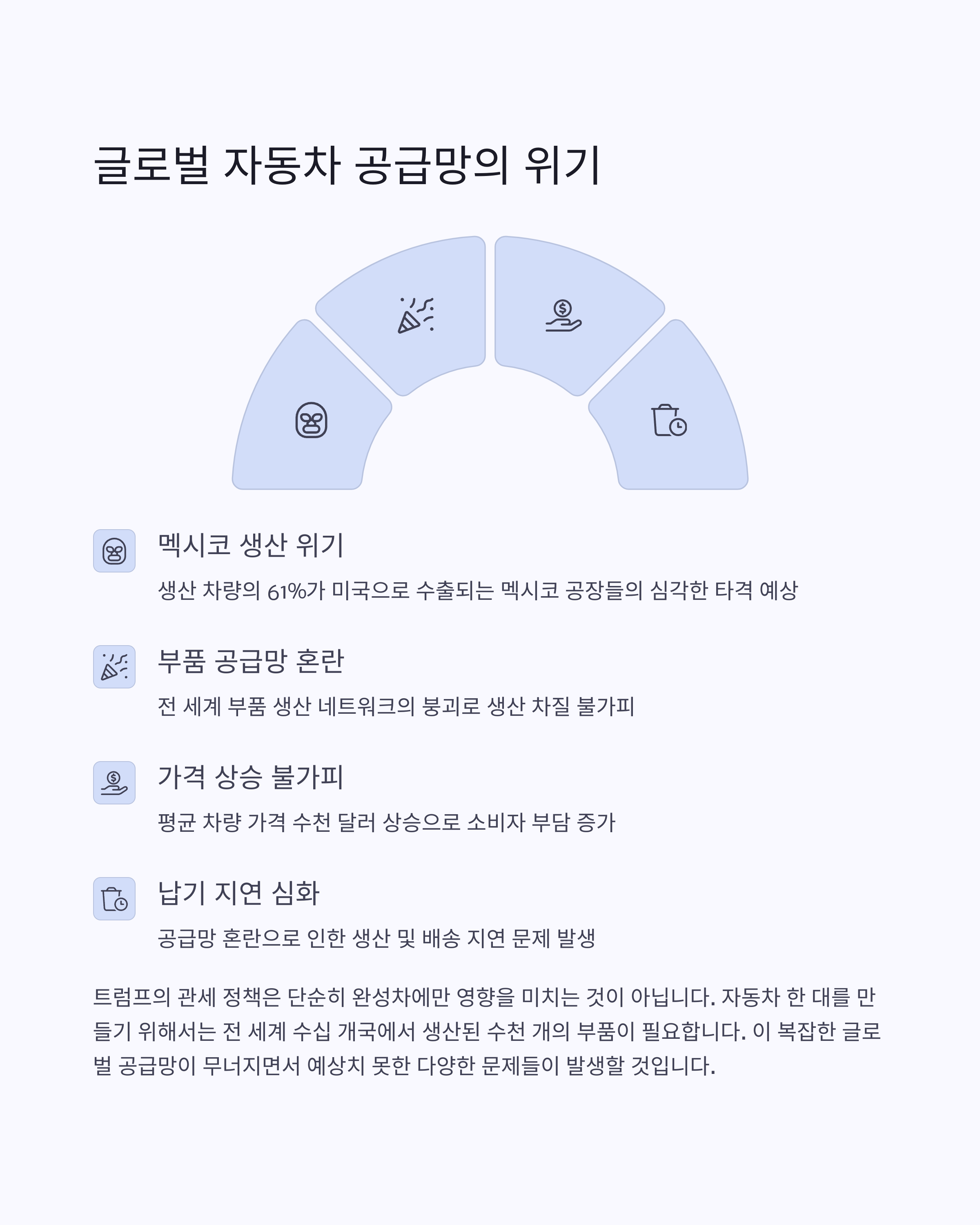 | 미국 | 수입 자동차 고관세 검토 (최대 25%) | 해외 브랜드 차량 가격 상승, 생산 기지 이전 고려 |