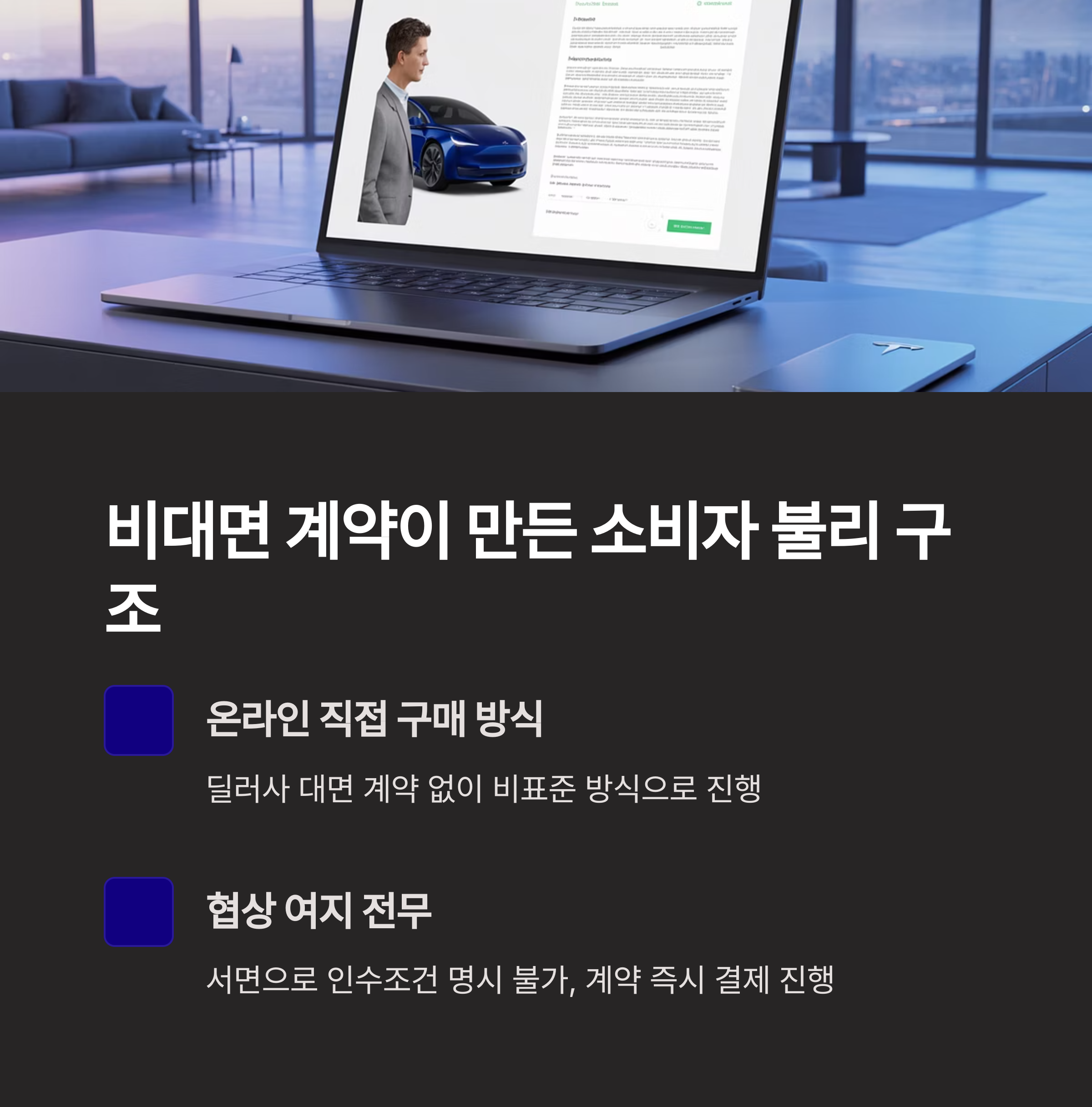 자동차 판매사와 소비자 간 대면 계약이 없기 때문에,