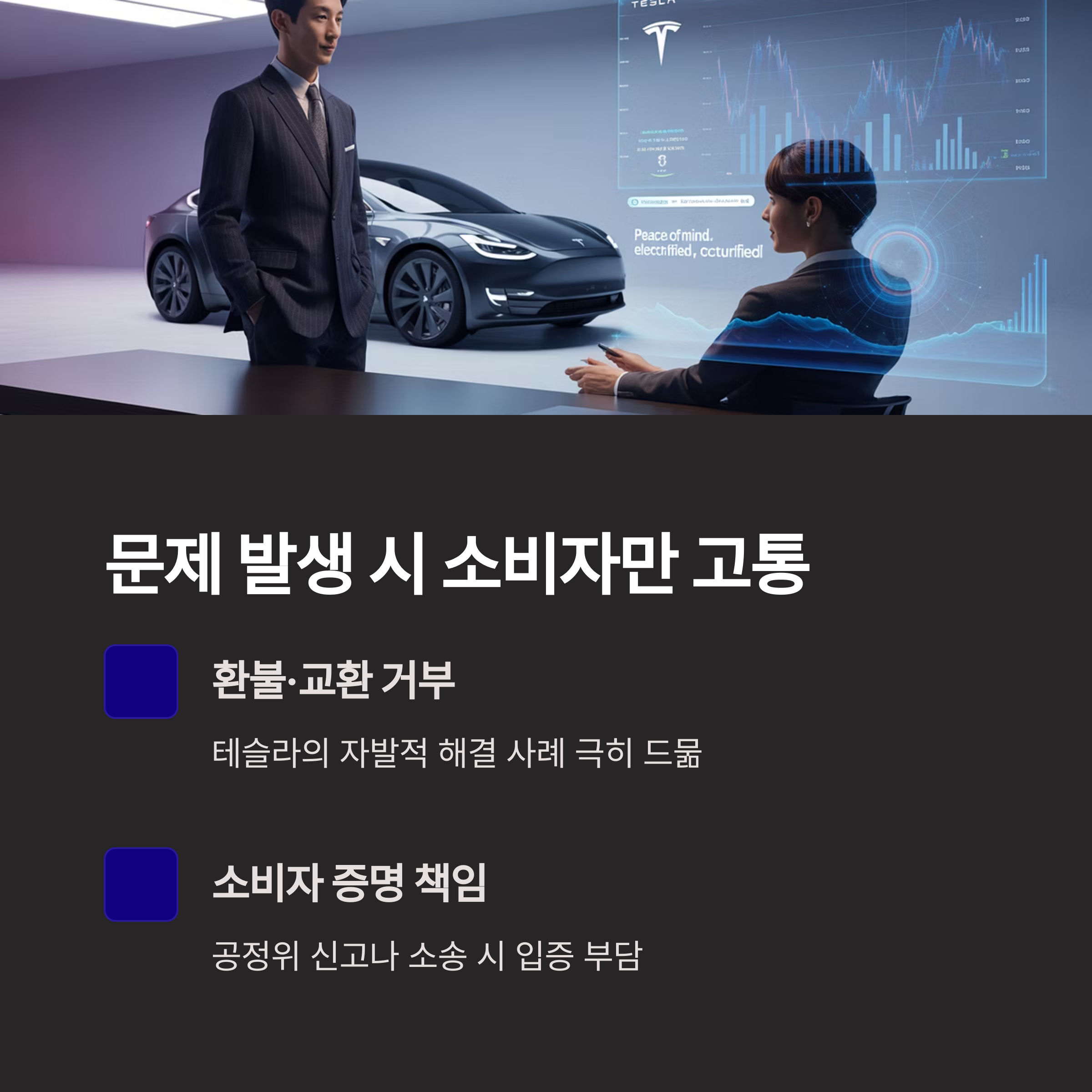 테슬라는 자발적으로 환불이나 차량 교환을 거의 진행하지 않습니다.