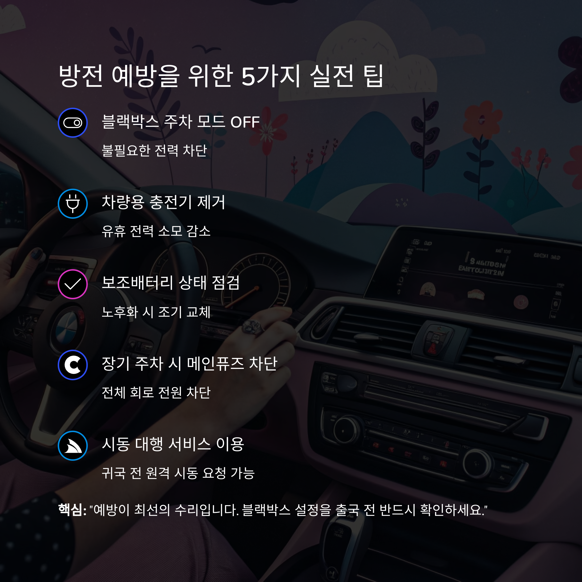 핵심: "예방이 최선의 수리입니다. 블랙박스 설정을 출국 전 반드시 확인하세요."