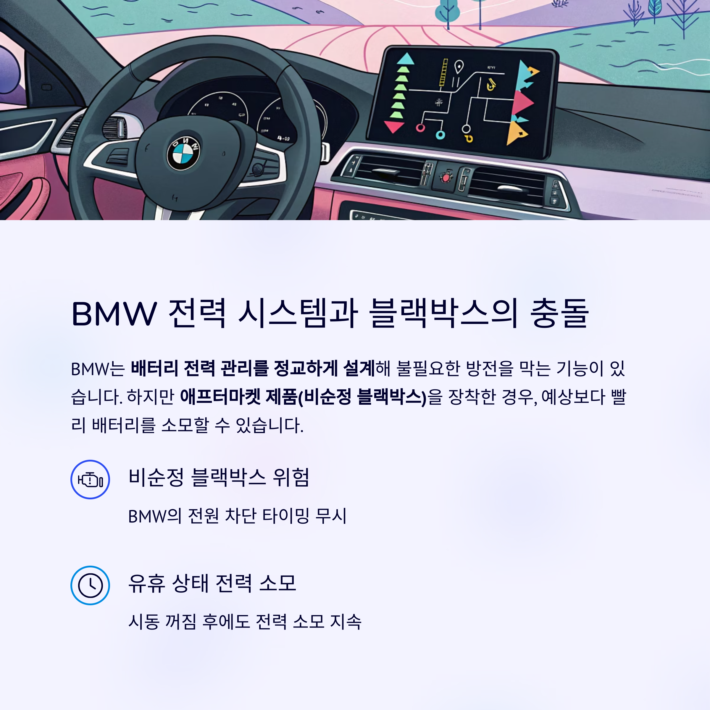 "정품이 아닌 블랙박스는 BMW의 전원 차단 타이밍을 무시할 가능성이 높습니다."