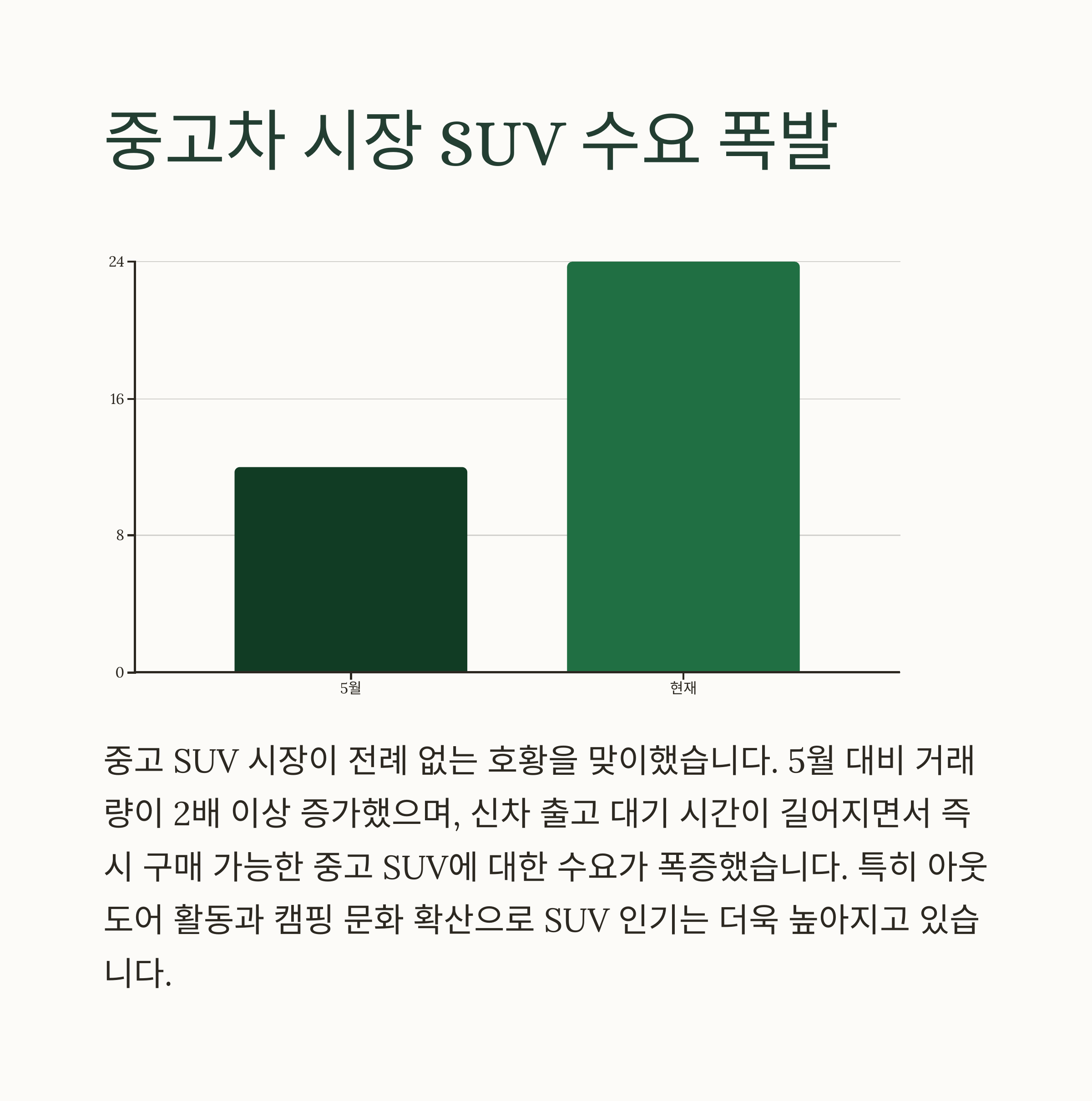 중고차 시세는 언젠가 다시 정상화될 것이므로, 현재의 비정상적인 고가 거래 상황을 전략적으로 활용하는 것이 현명한 소비자의 판단이라 할 수 있습니다.
