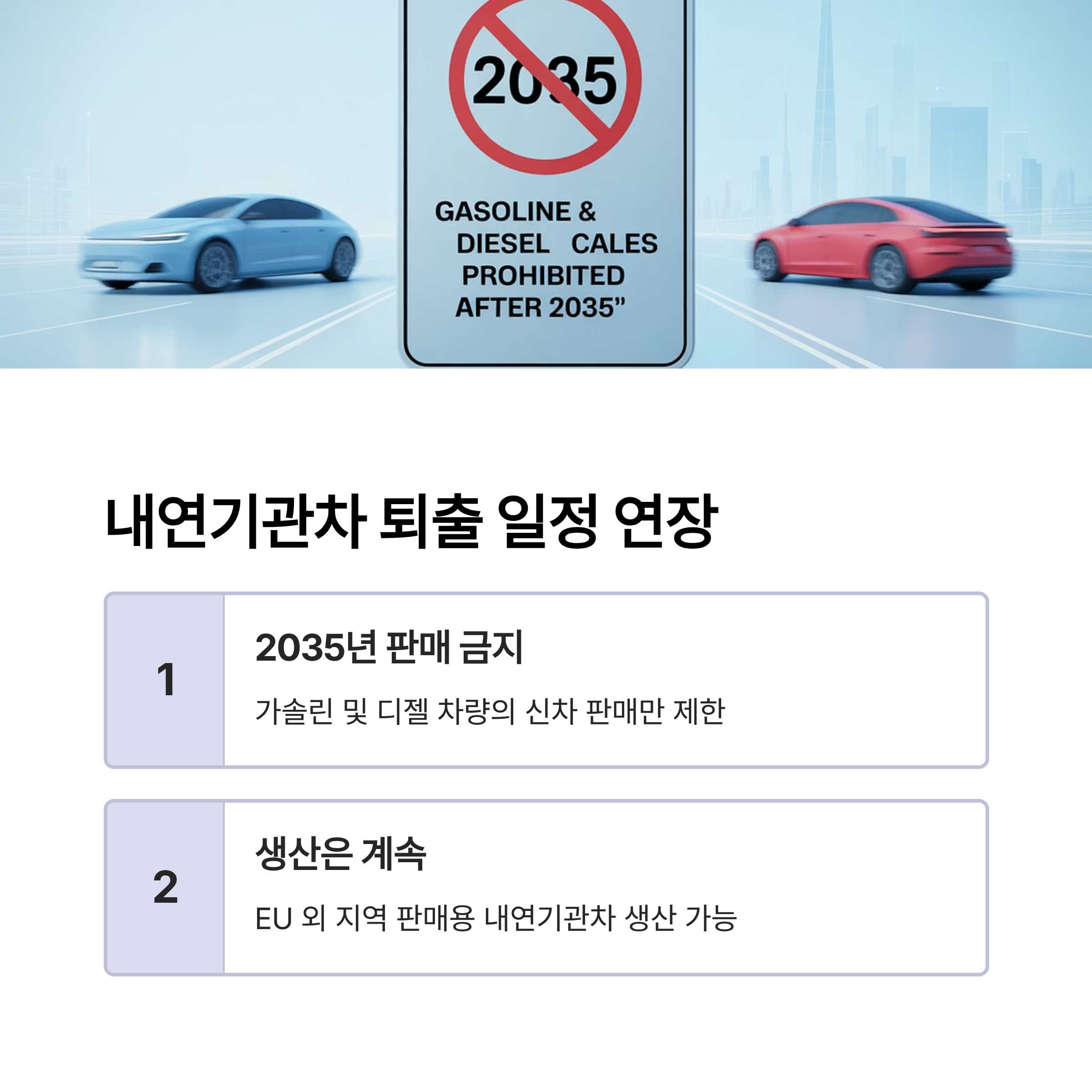 EU의 내연기관 정책은 단순한 금지가 아닌, 전환의 속도 조절과 현실 반영에 초점을 맞추고 있습니다.