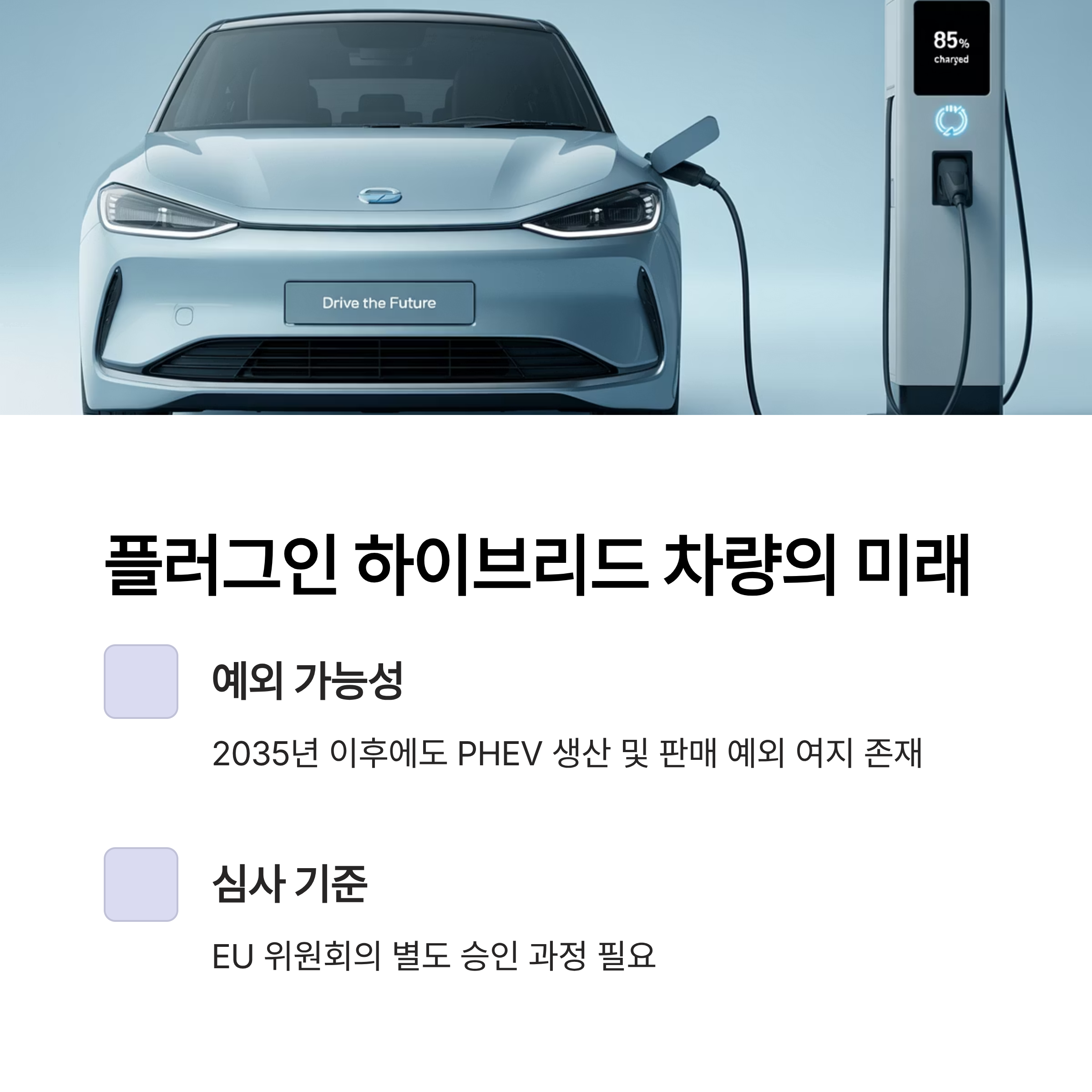 플러그인 하이브리드(PHEV)는 2035년 이후에도 예외적으로 생산이 허용될 수 있는 여지가 남아 있으며,