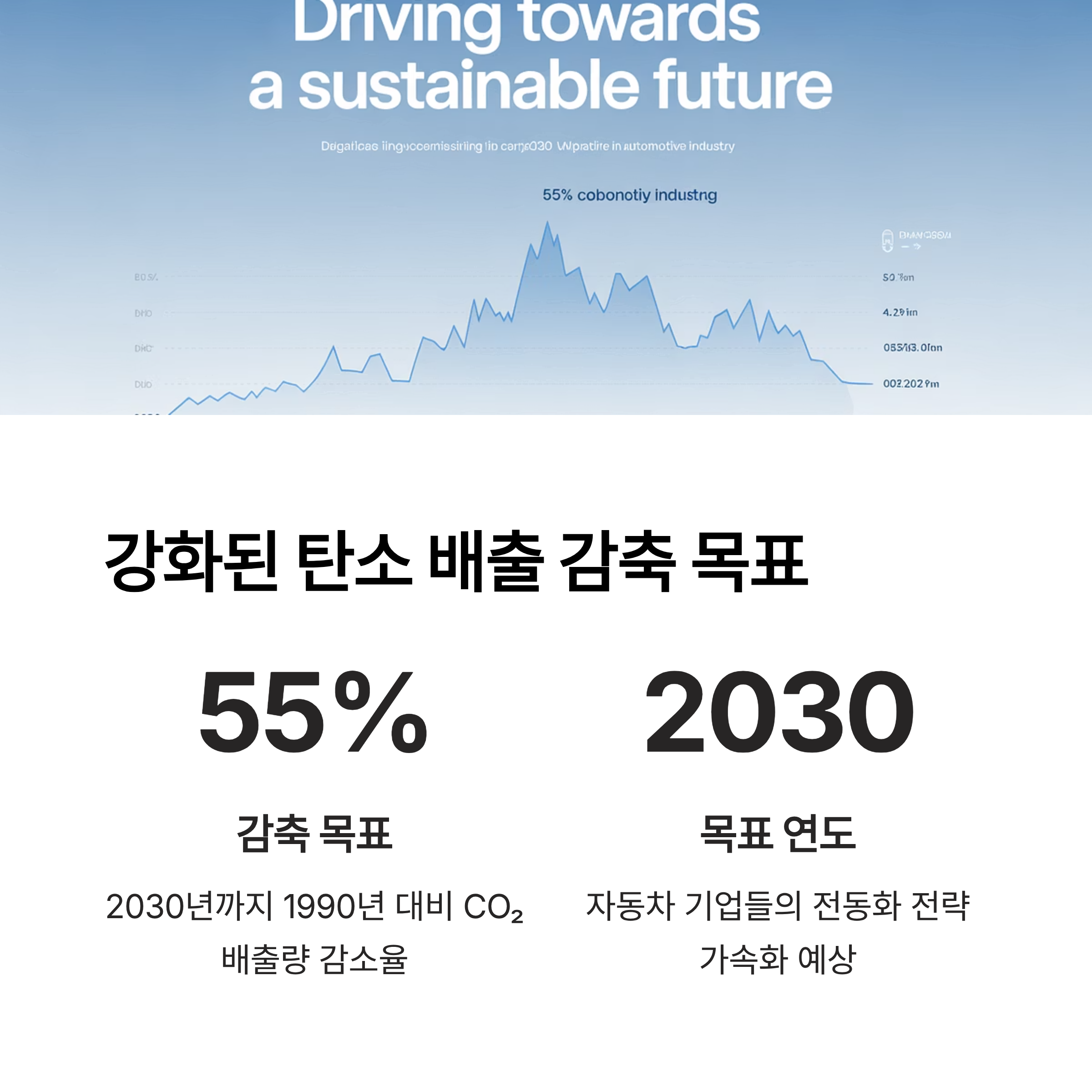 EU는 2030년까지 자동차에서 발생하는 이산화탄소 배출량을 1990년 대비 55% 감축한다는 강력한 목표를 세웠습니다.