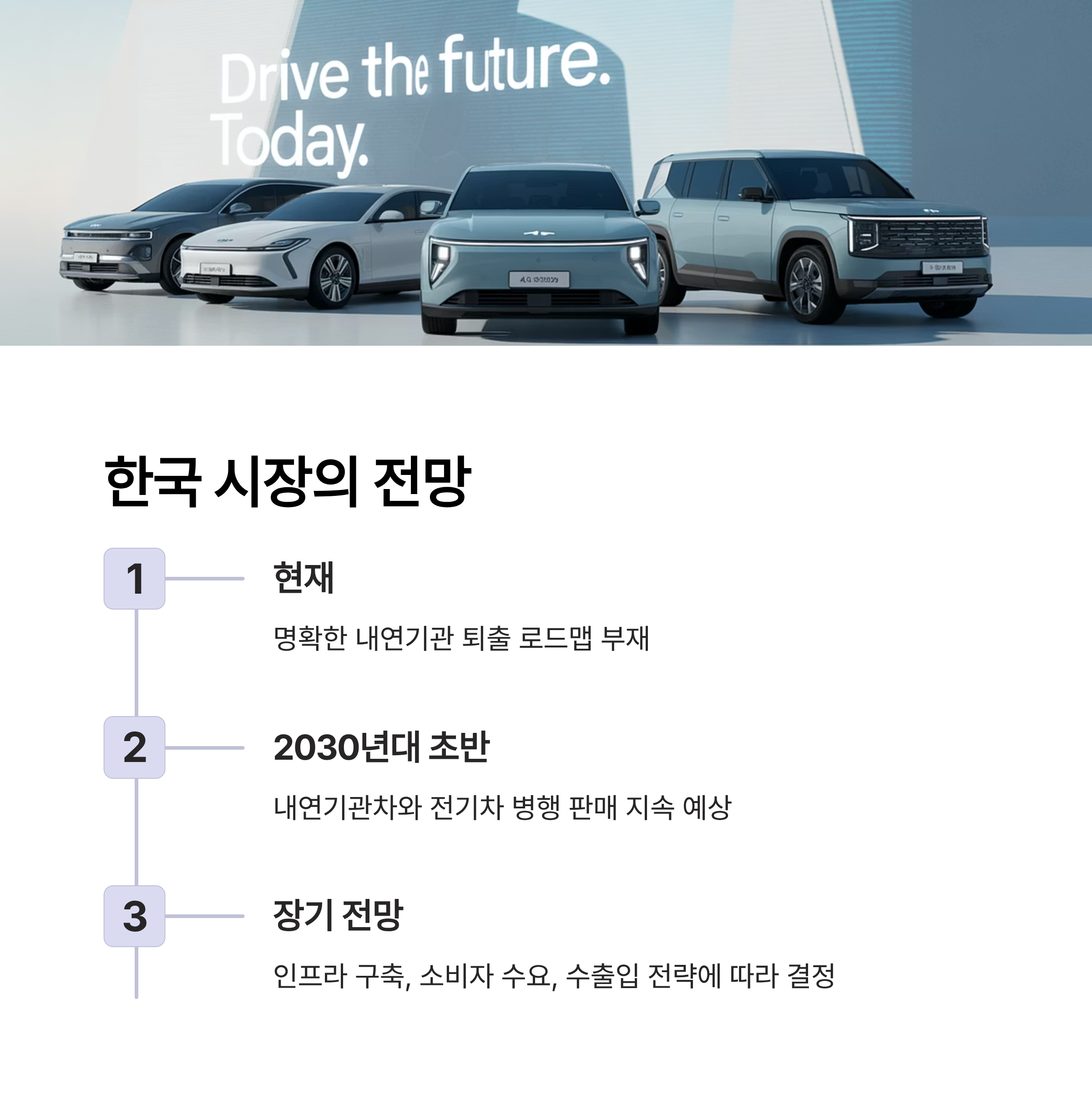 한국 정부는 2035년 이후 내연기관차 판매 제한에 대한 명확한 로드맵을 제시하지 않았으며,