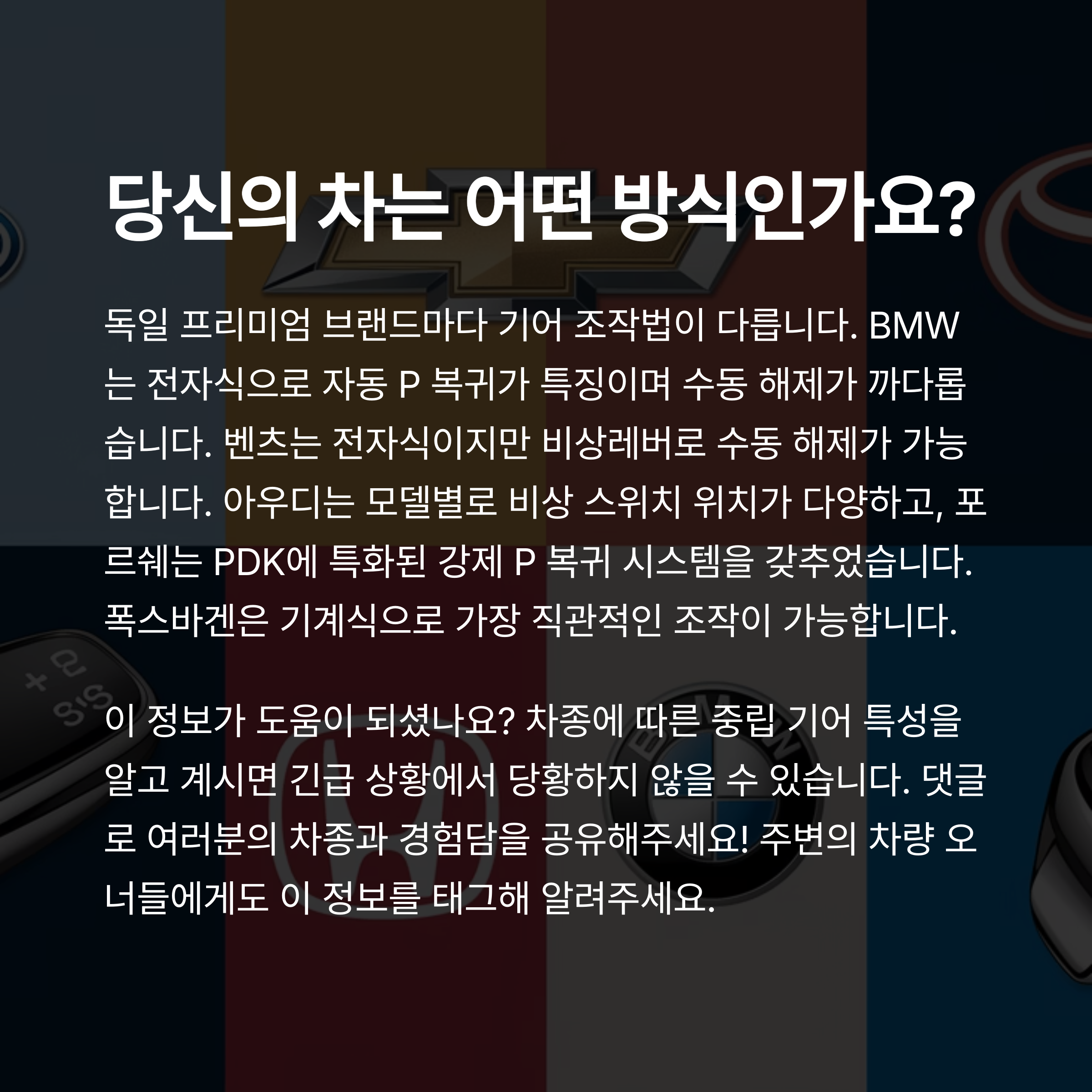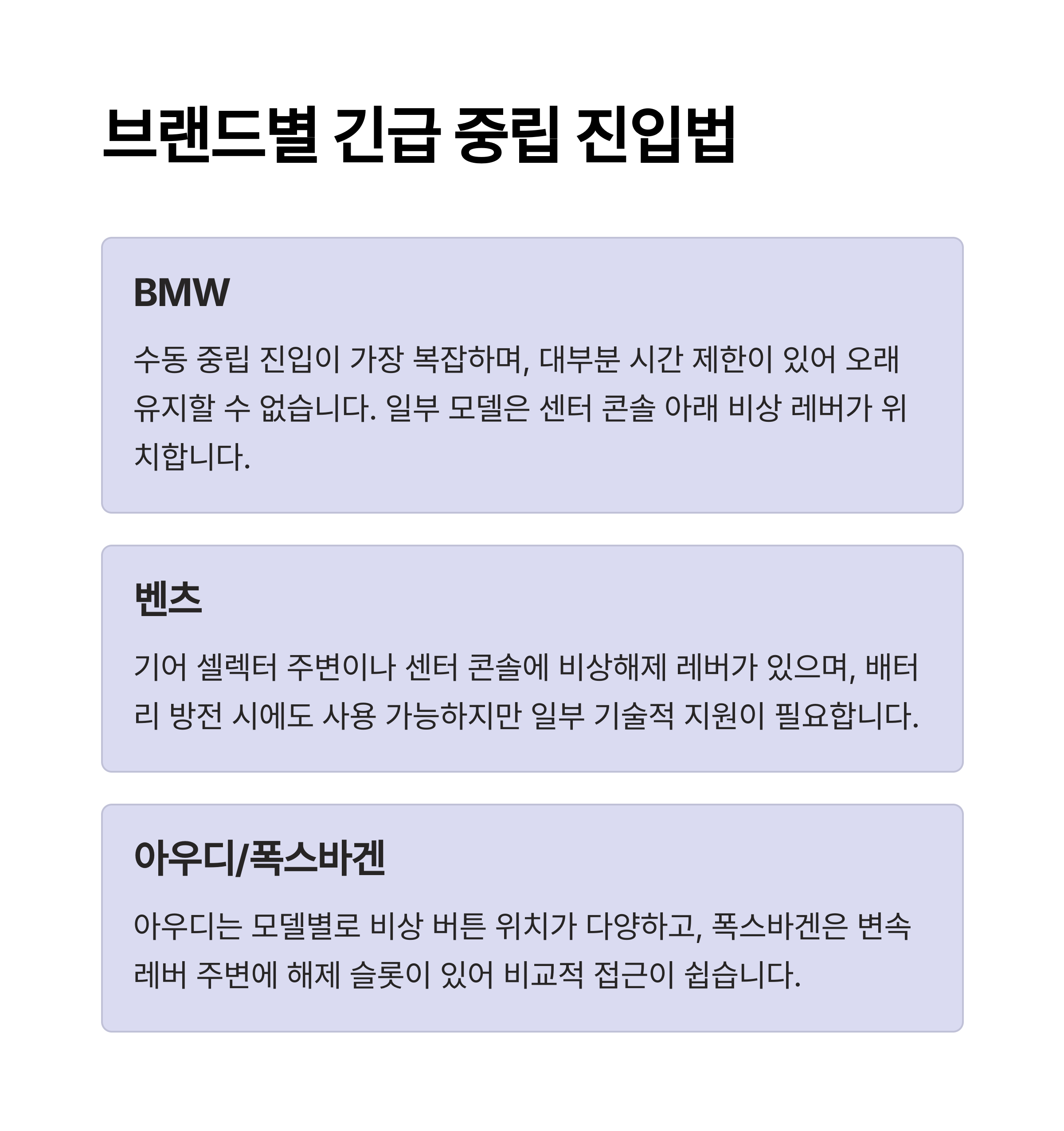 차량 브랜드마다 중립 진입 방식이 다르기 때문에