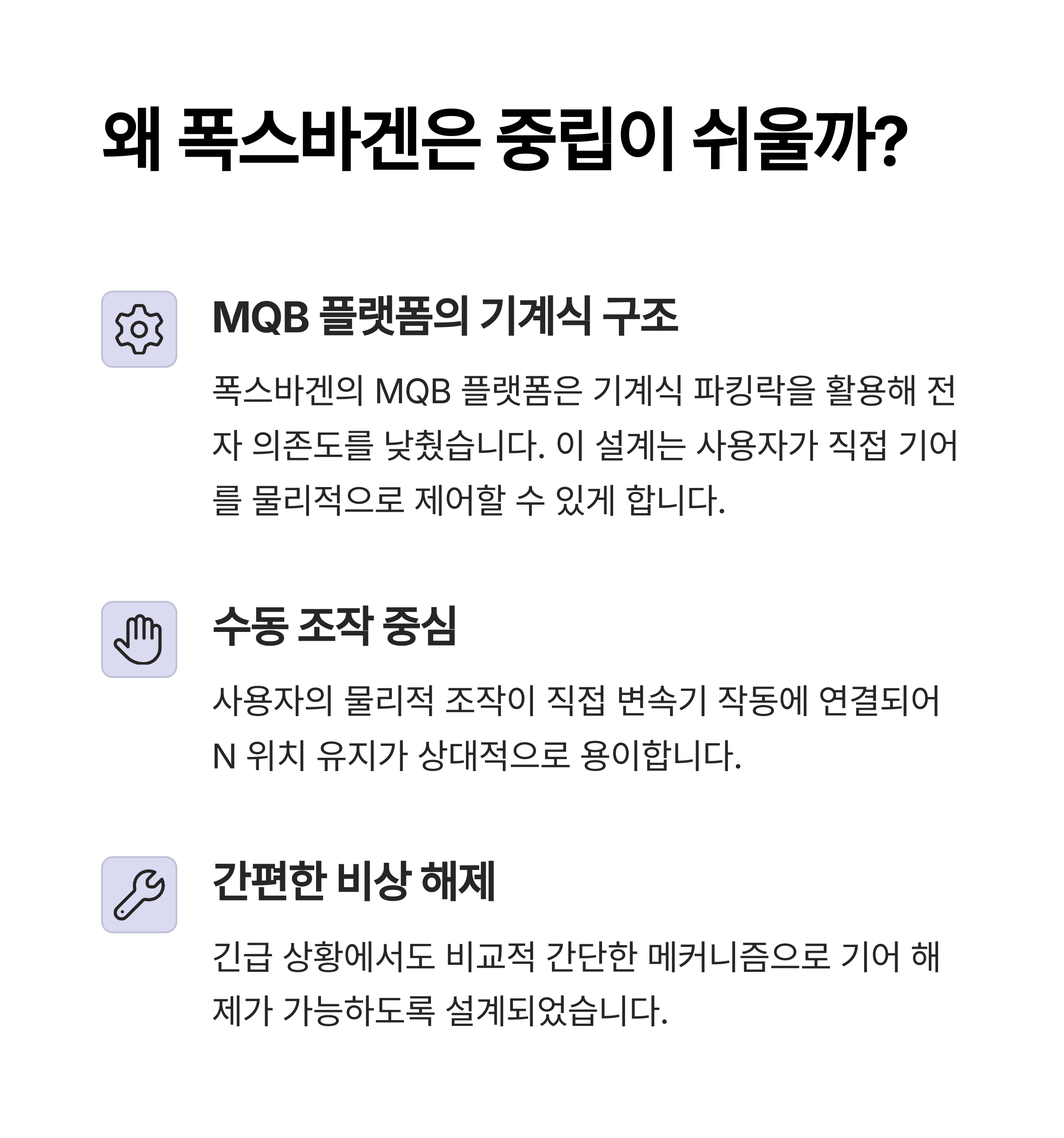 폭스바겐은 중립 진입이 매우 직관적인 브랜드입니다