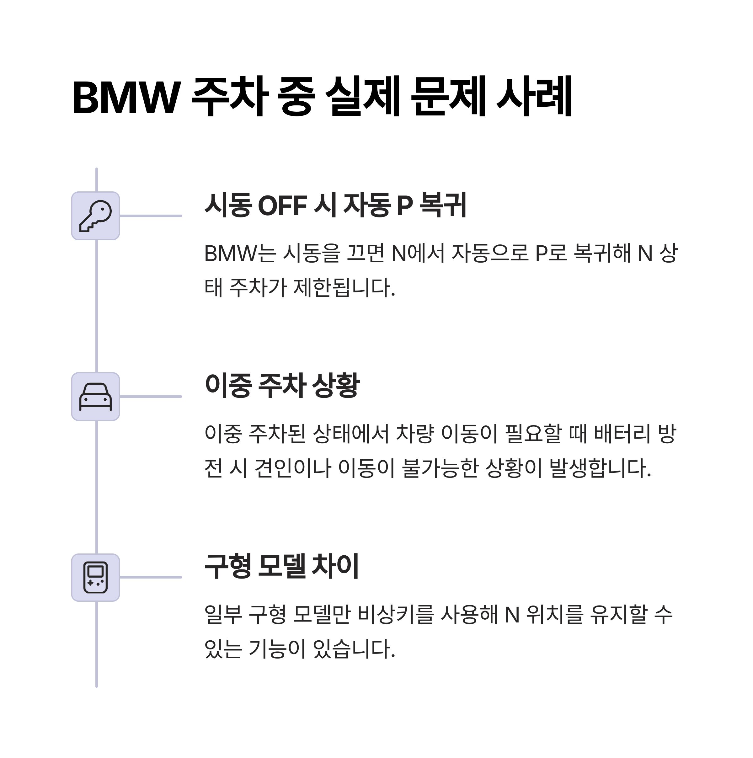 BMW 운전자들이 흔히 겪는 불편한 상황은 다음과 같습니다