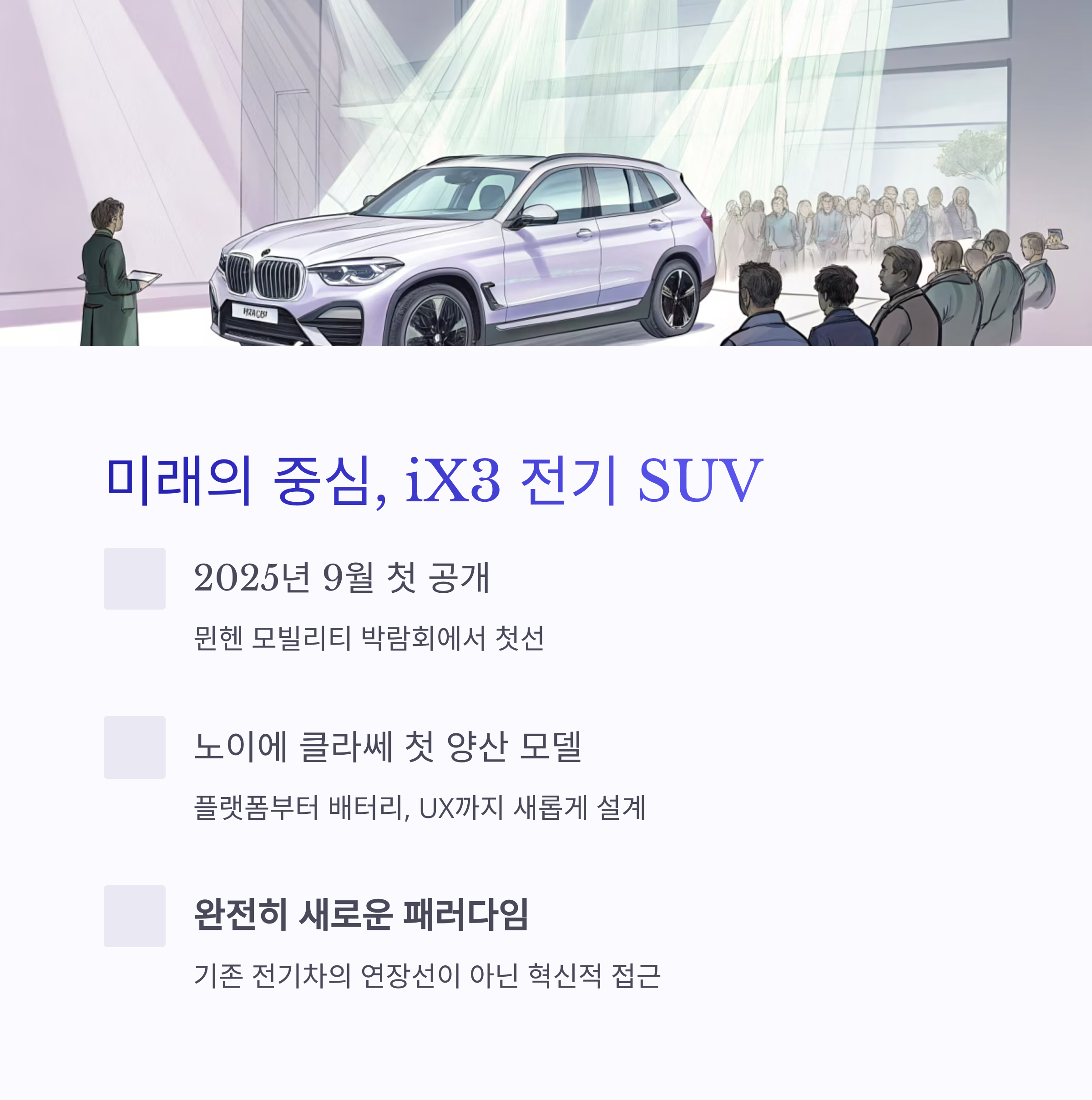iX3 | 2025.09 | 2026년 상반기 | SUV형 전동화 전략 모델 |