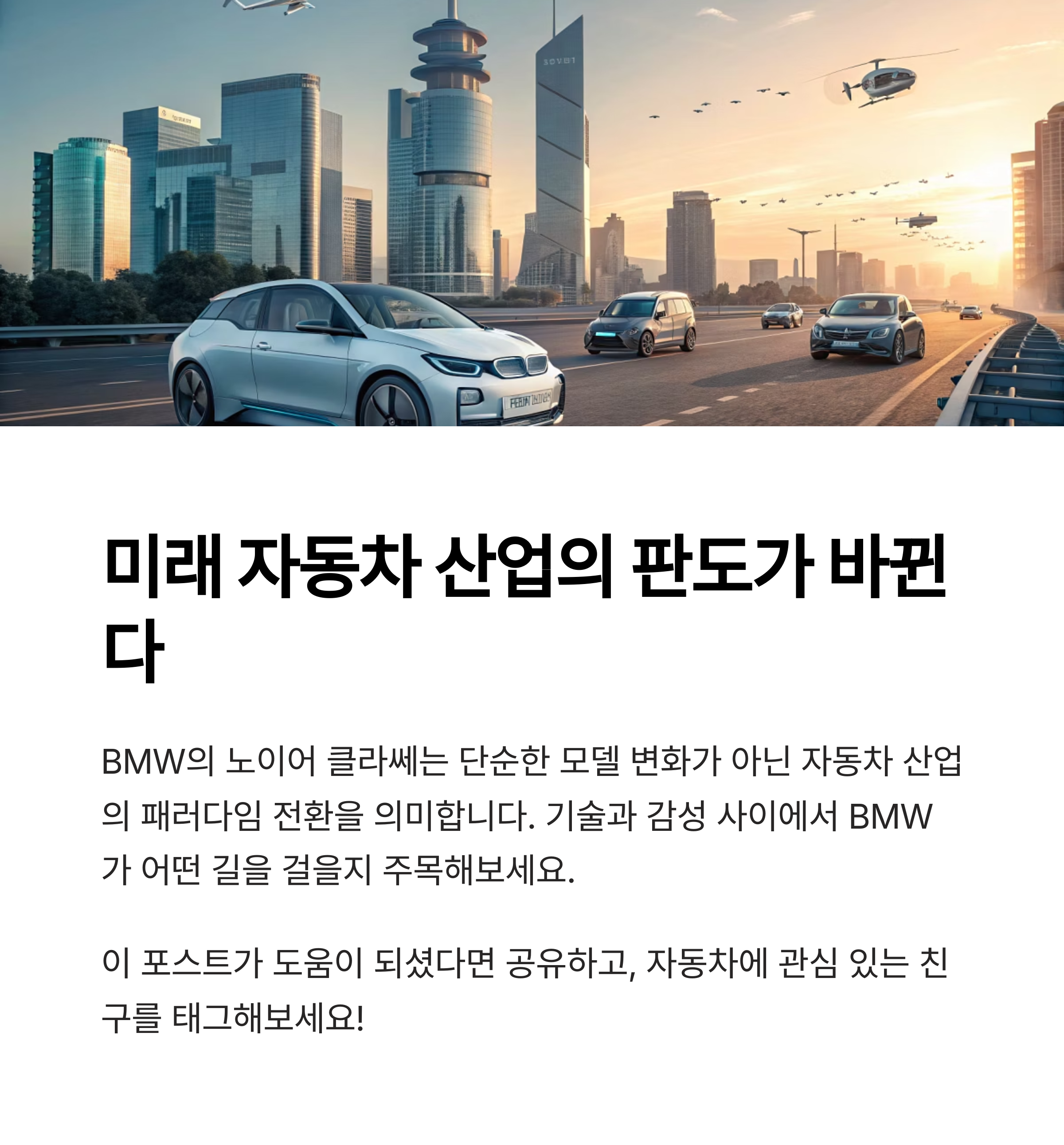 BMW가 2025년을 기점으로 도입할 ‘노이어 클라쎄(Neue Klasse)’는 기존 자동차 산업의 틀을 깨는 급진적인 전환점입니다.