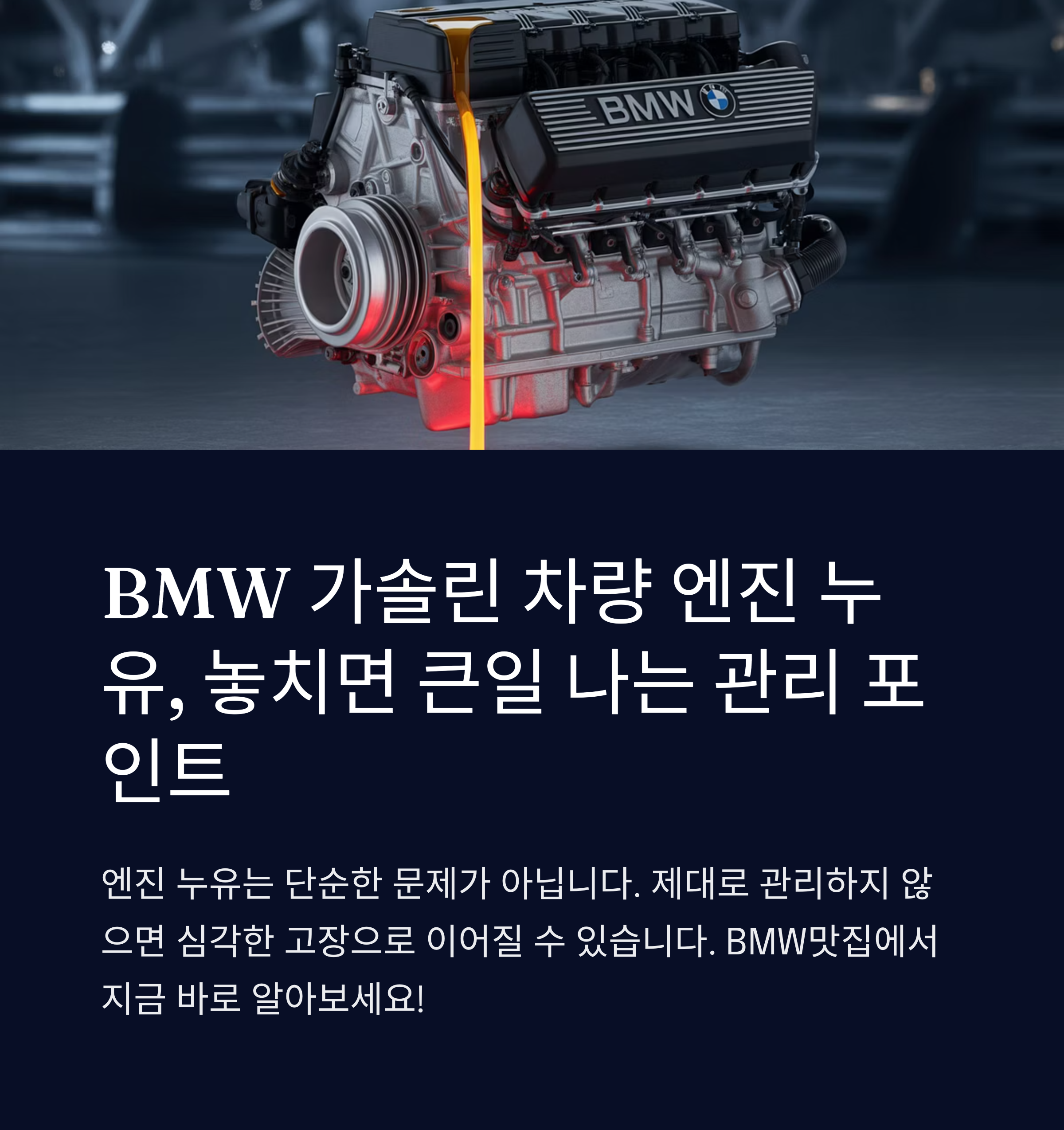 BMW 가솔린 차량의 엔진 누유는 단순한 문제가 아닙니다.