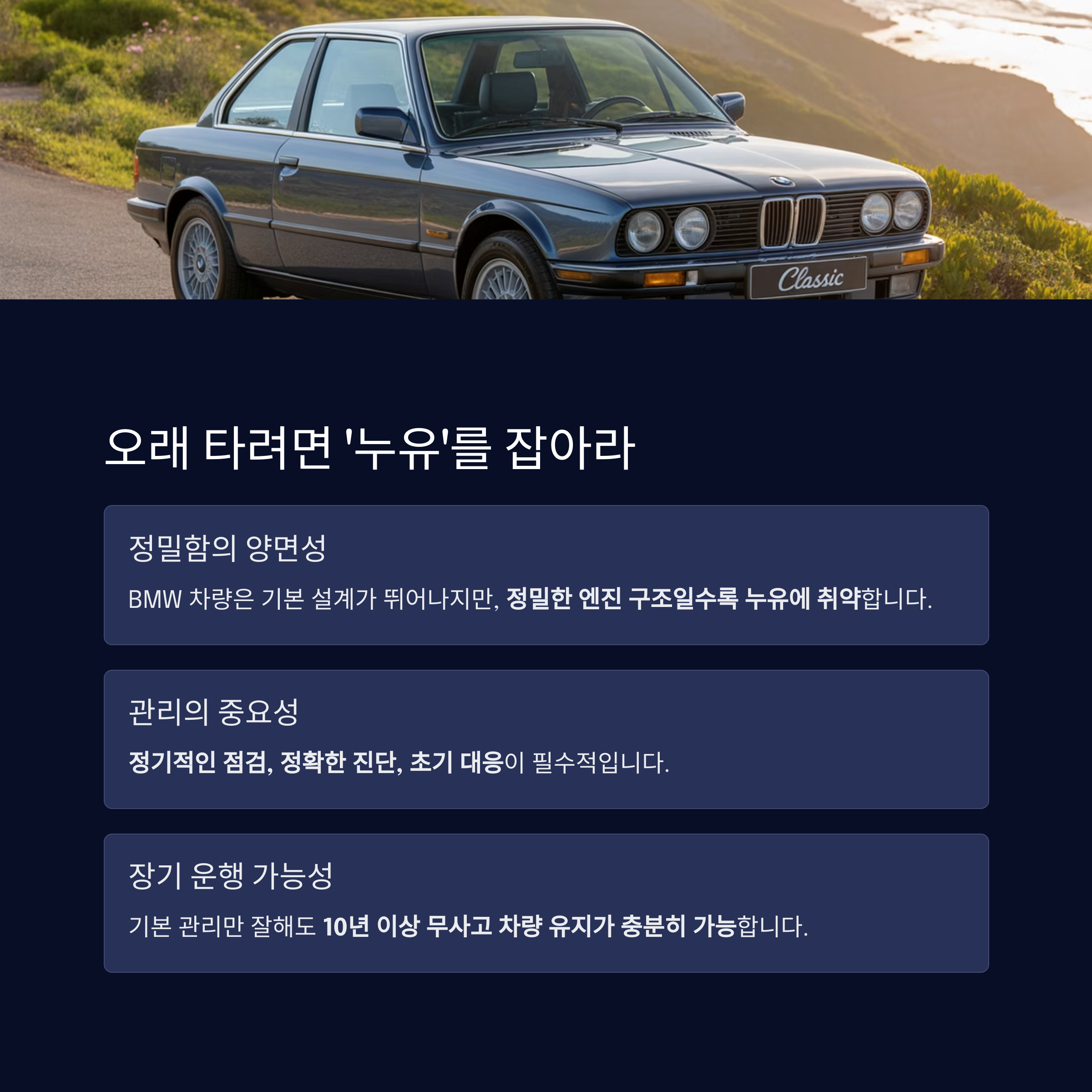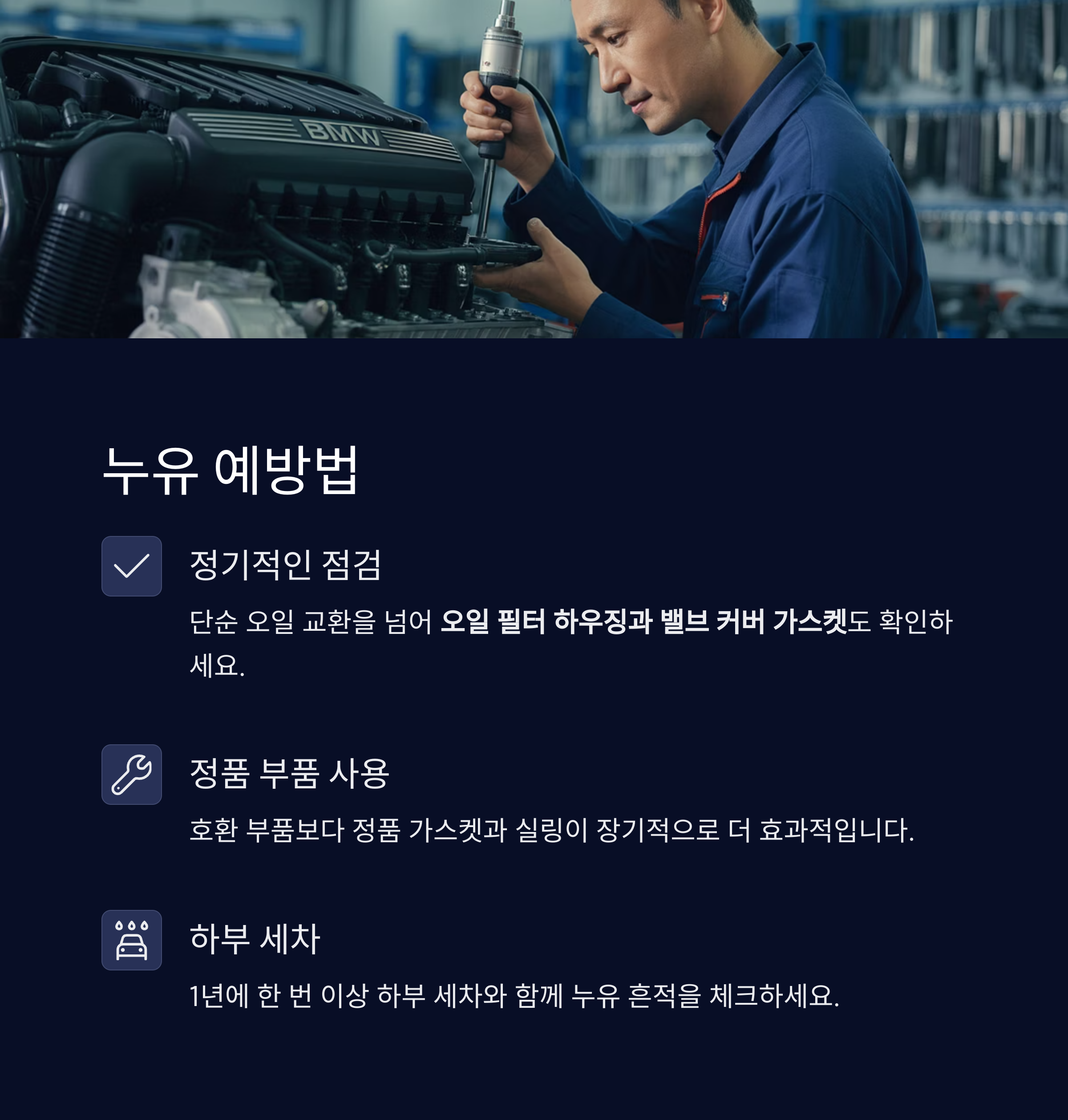 결론: BMW 가솔린 차량, 오래 타려면 '누유'를 잡아야 한다