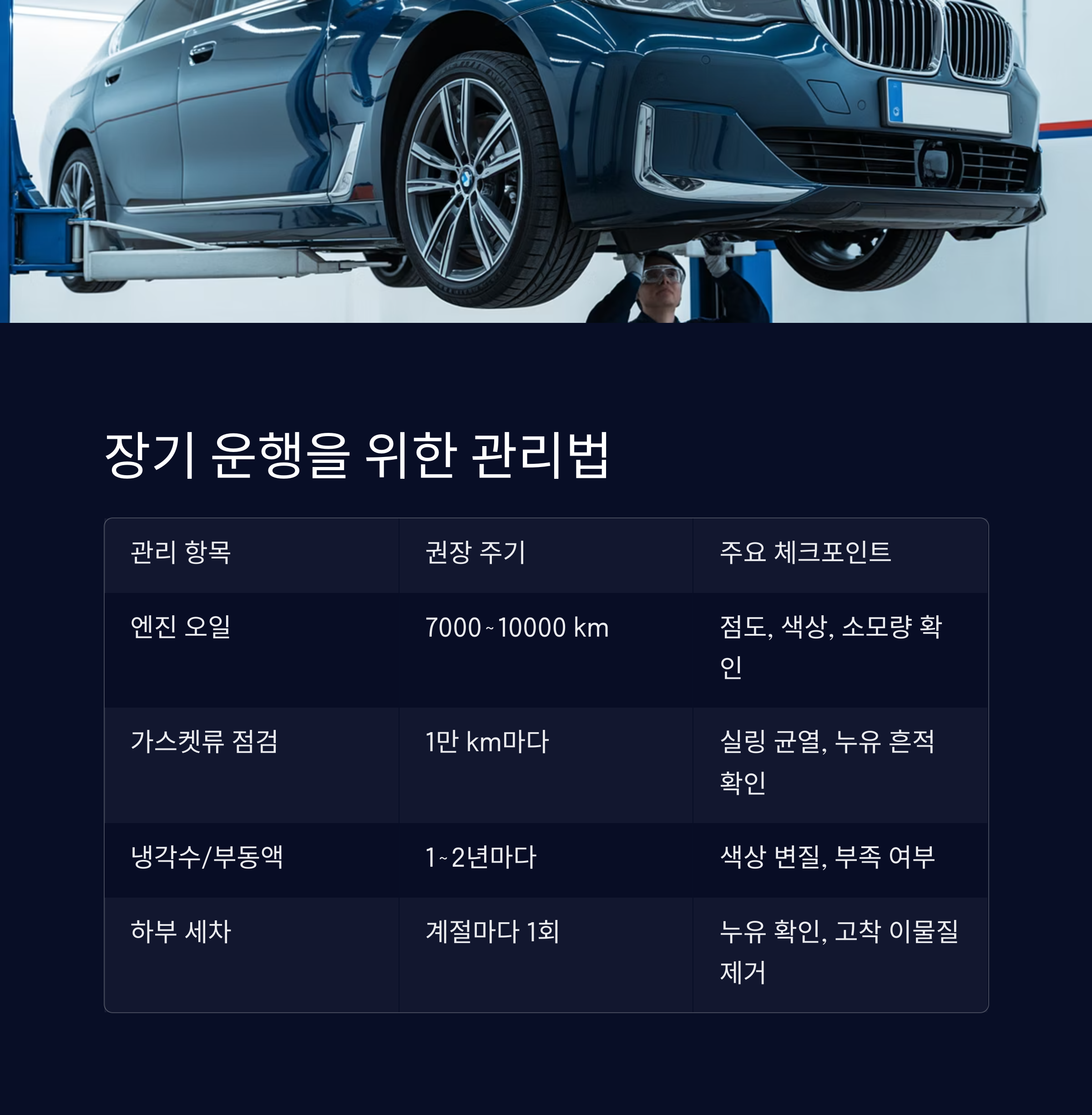 운전자 스스로가 점검하는 습관을 들이는 것이 장기 관리의 핵심입니다.