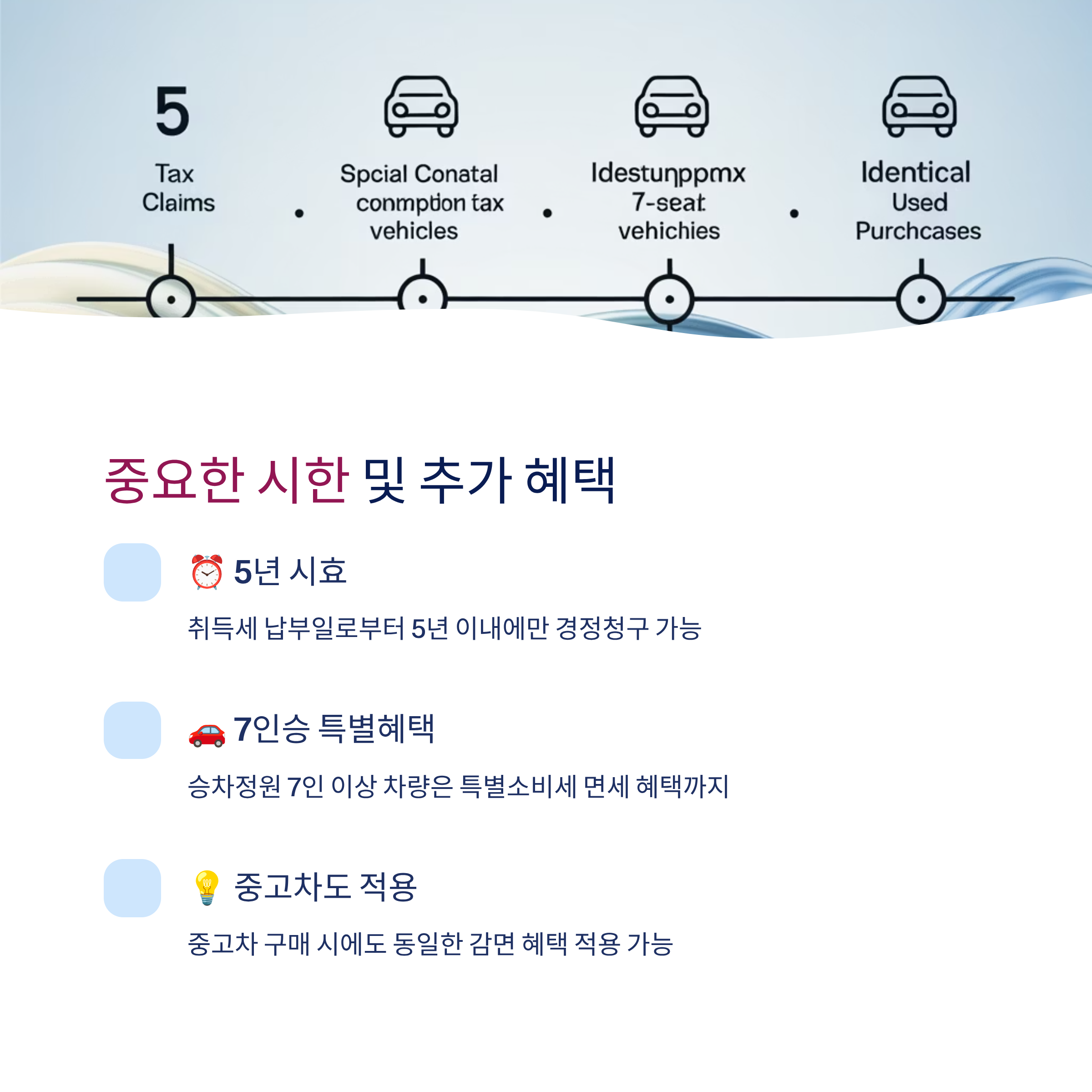 - 중고차: 중고차 구매 시에도 동일한 감면 혜택 적용 가능