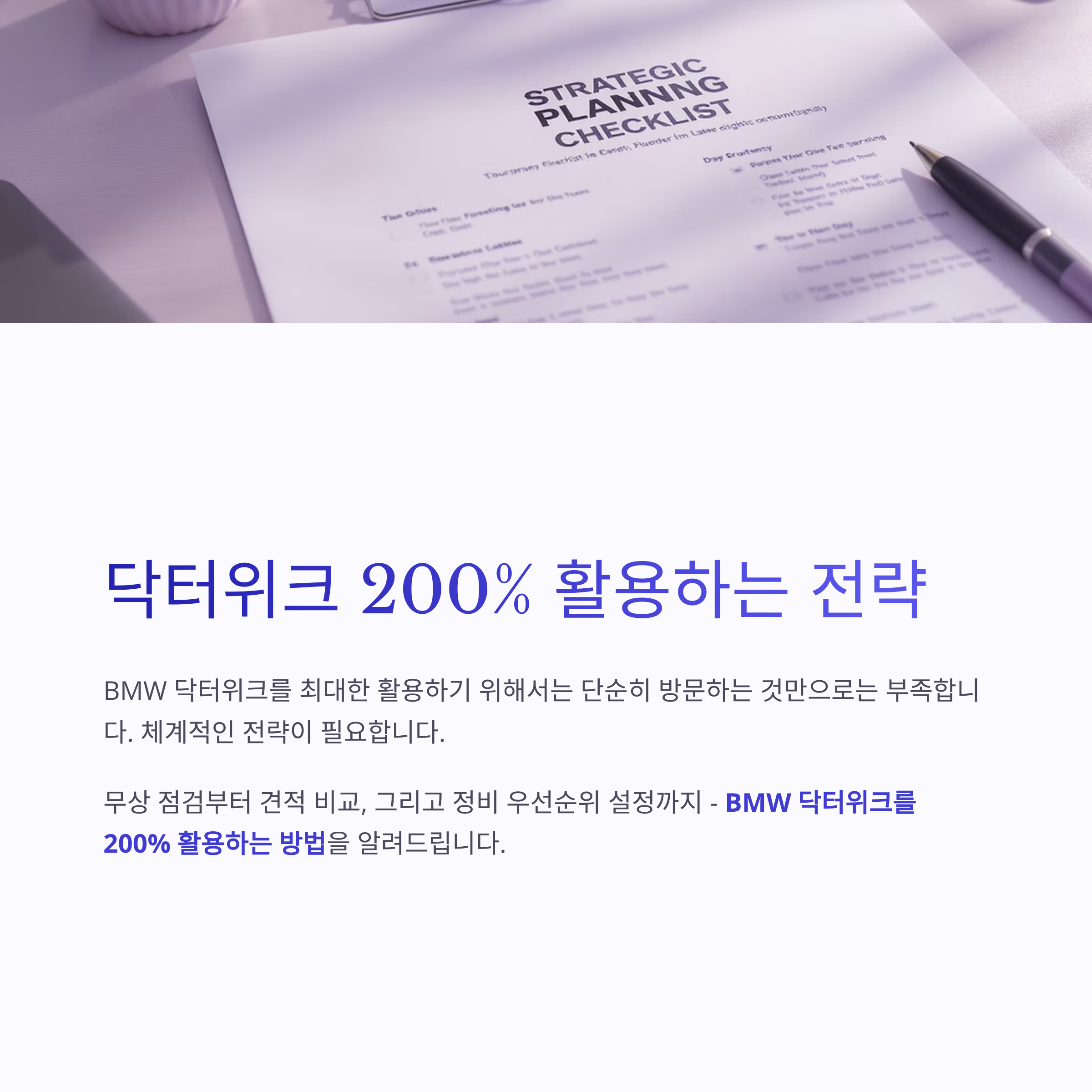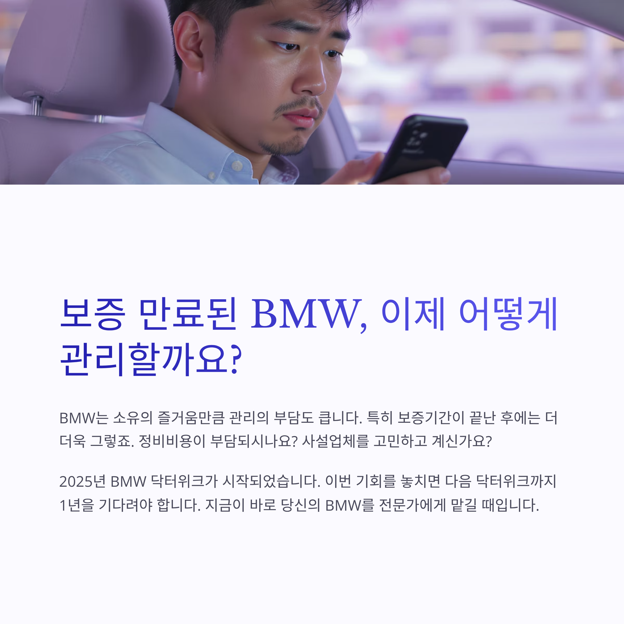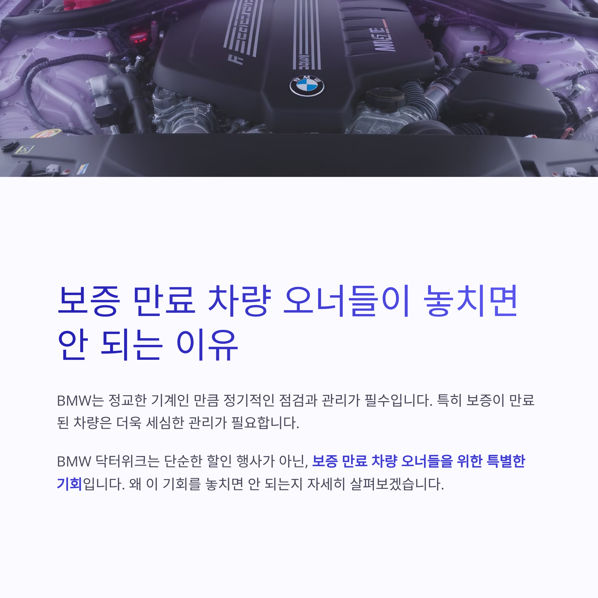 BMW 닥터위크, 보증 만료된 차량 오너들의 필수 선택입니다.