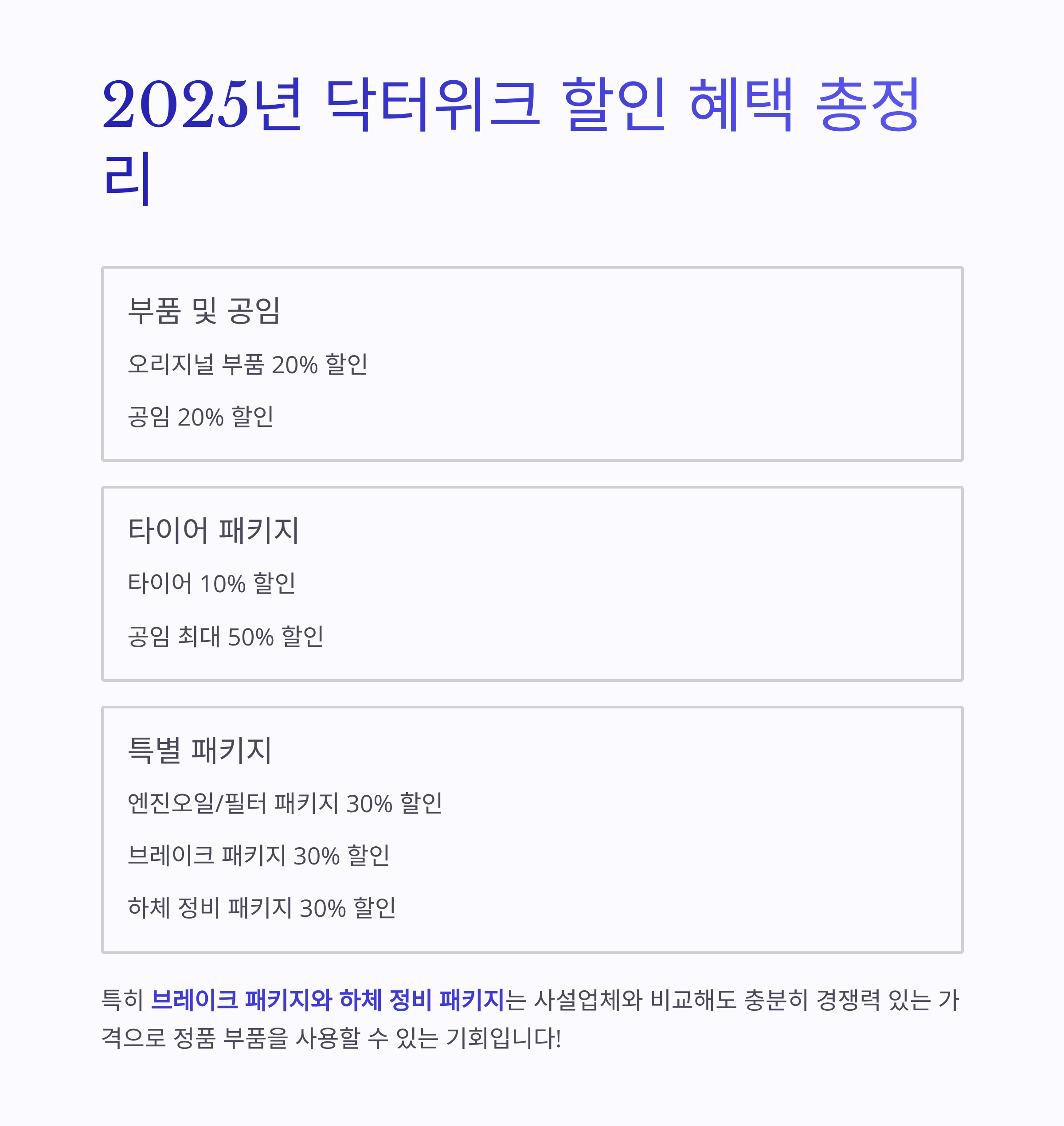 - 하체 정비 패키지 30% 할인